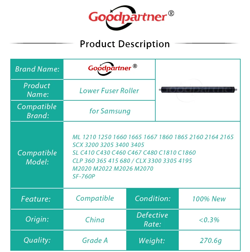 1 нижний ролик фьюзера для Samsung ML 1210 1250 1660 1665 1667 1860 1865 2160 SCX 2164 2165 3200 3205 3400 3405 360 365 415