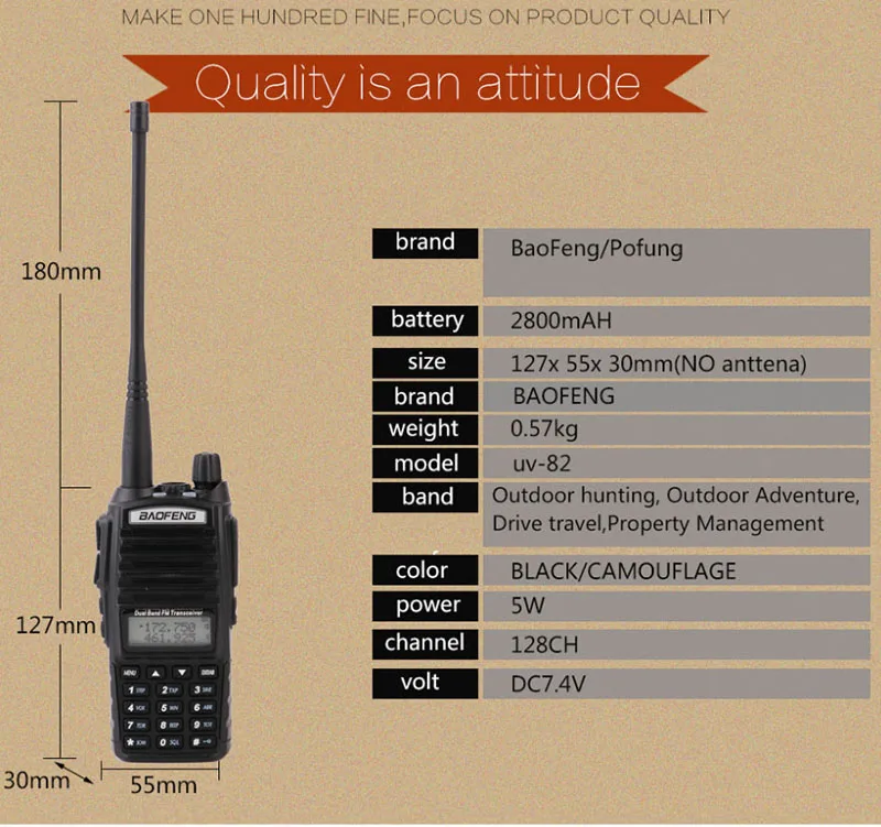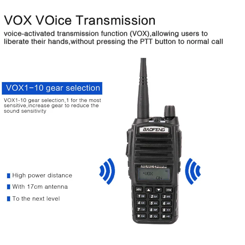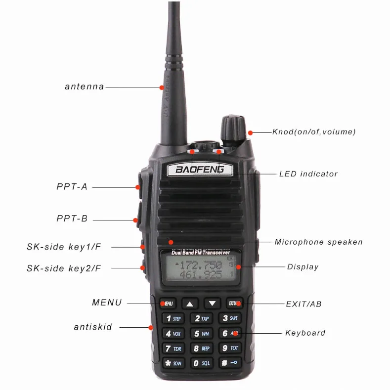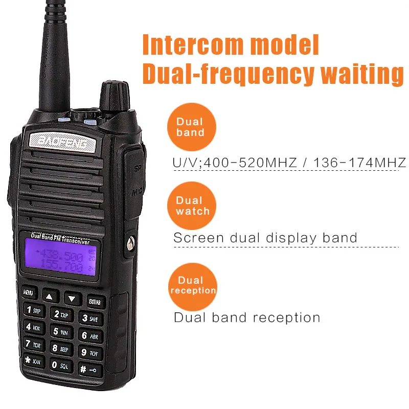 Эти наборы двусторонней радиосвязи являются новейшими стилями BAO FENG, он имеет множество функций, таких какДвухдиапазонный, двойной дисплей, двойные часы, отличные характеристики, Форма модная, она имеет хороший опыт продаж на рынке связи. Он был награжден хорошей репутацией от наших клиентов.Он имеет много цветов, которые могут удовлетворить различных поклонников моды Это действительно экономичное двухдиапазонное двухстороннее радио с ЖК-дисплеем, если вам это нравится, почему вы сомневаетесь? Свяжитесь с нами сейчас!