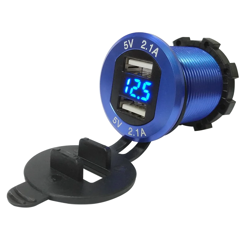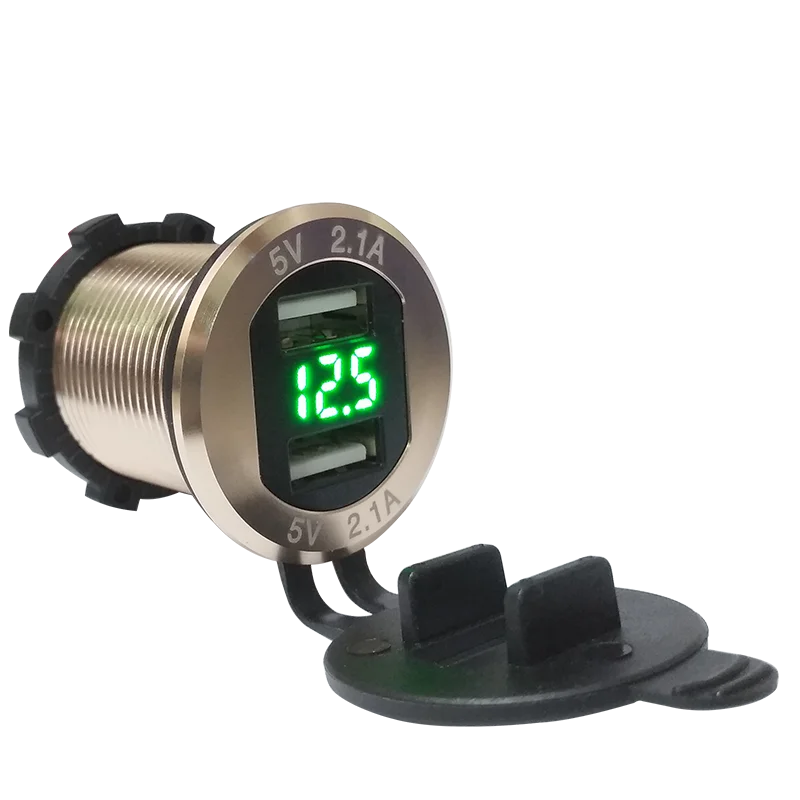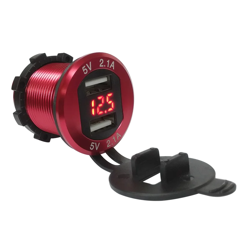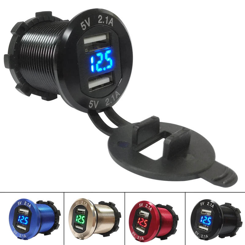 Водонепроницаемое автомобильное зарядное устройство в металлическом корпусе, с вольтметром