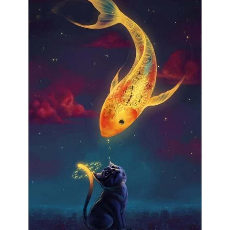 Картина Стразы 3D, Хрустальный декор, алмазная живопись сделай сам, вышивка крестиком черная кошка и золотая рыбка, узор, алмазная вышивка, ремесла