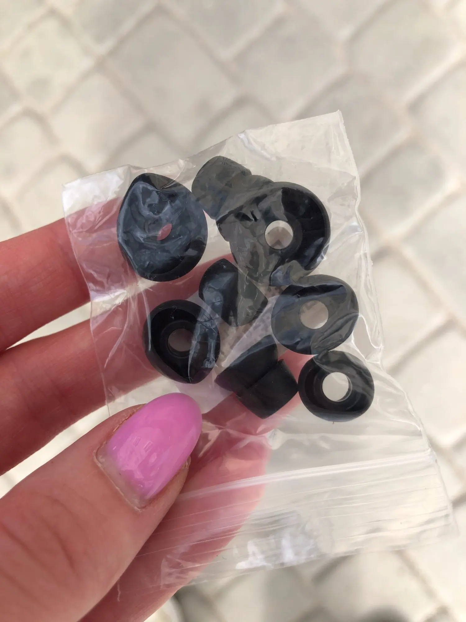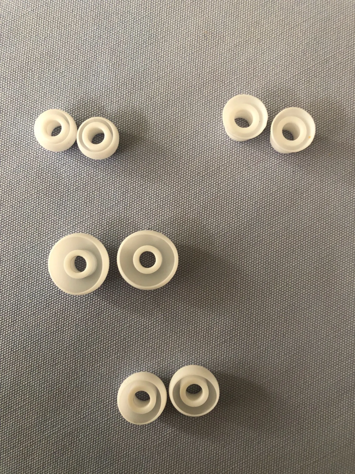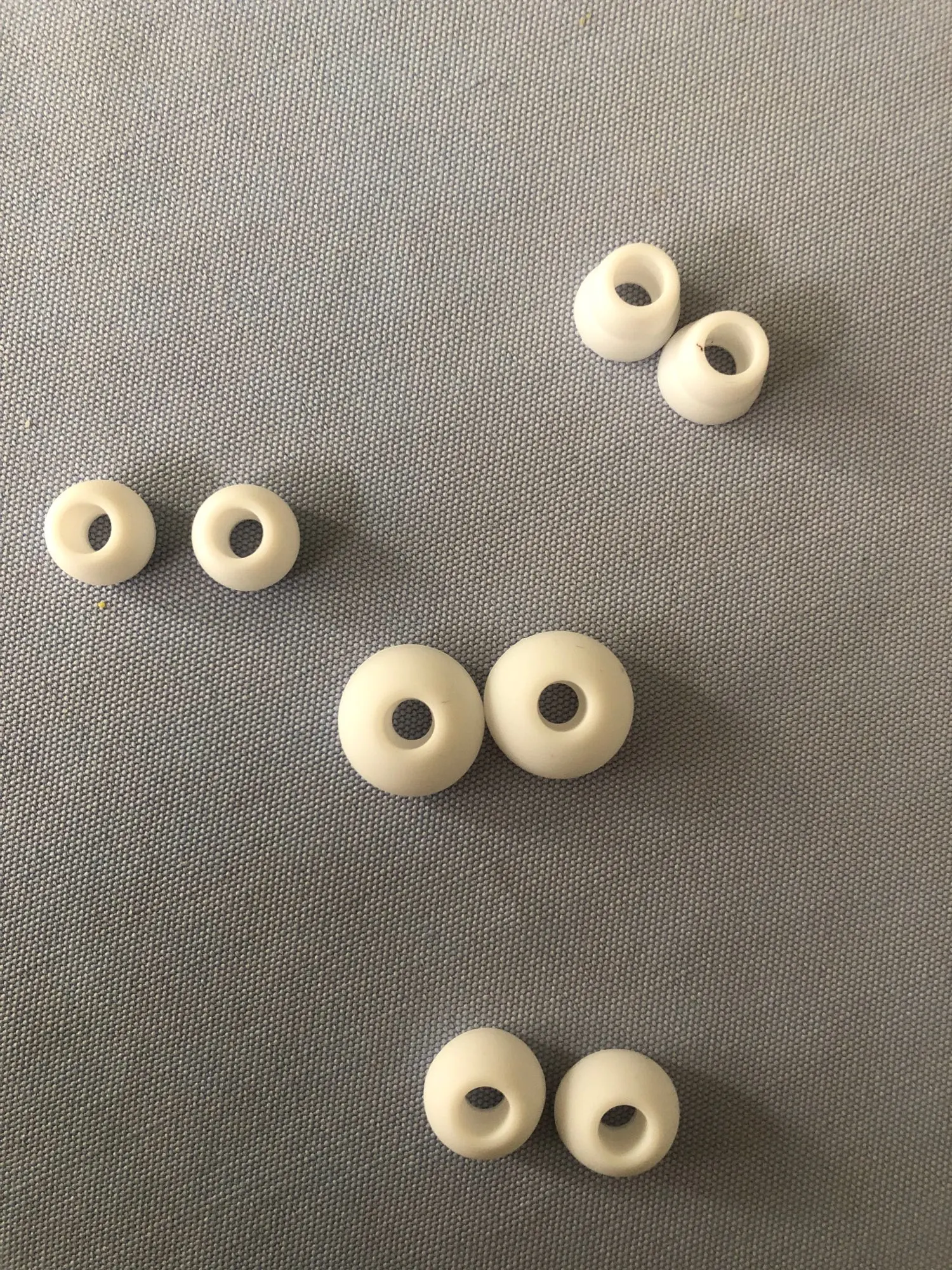 большие насадки (крайние справа на фото) очень огомные, остальные наоборот на очень небольшое ухо, мне не подошли, но обладателям узкого слуховоготпрохода точно зайдут. качество приличное
