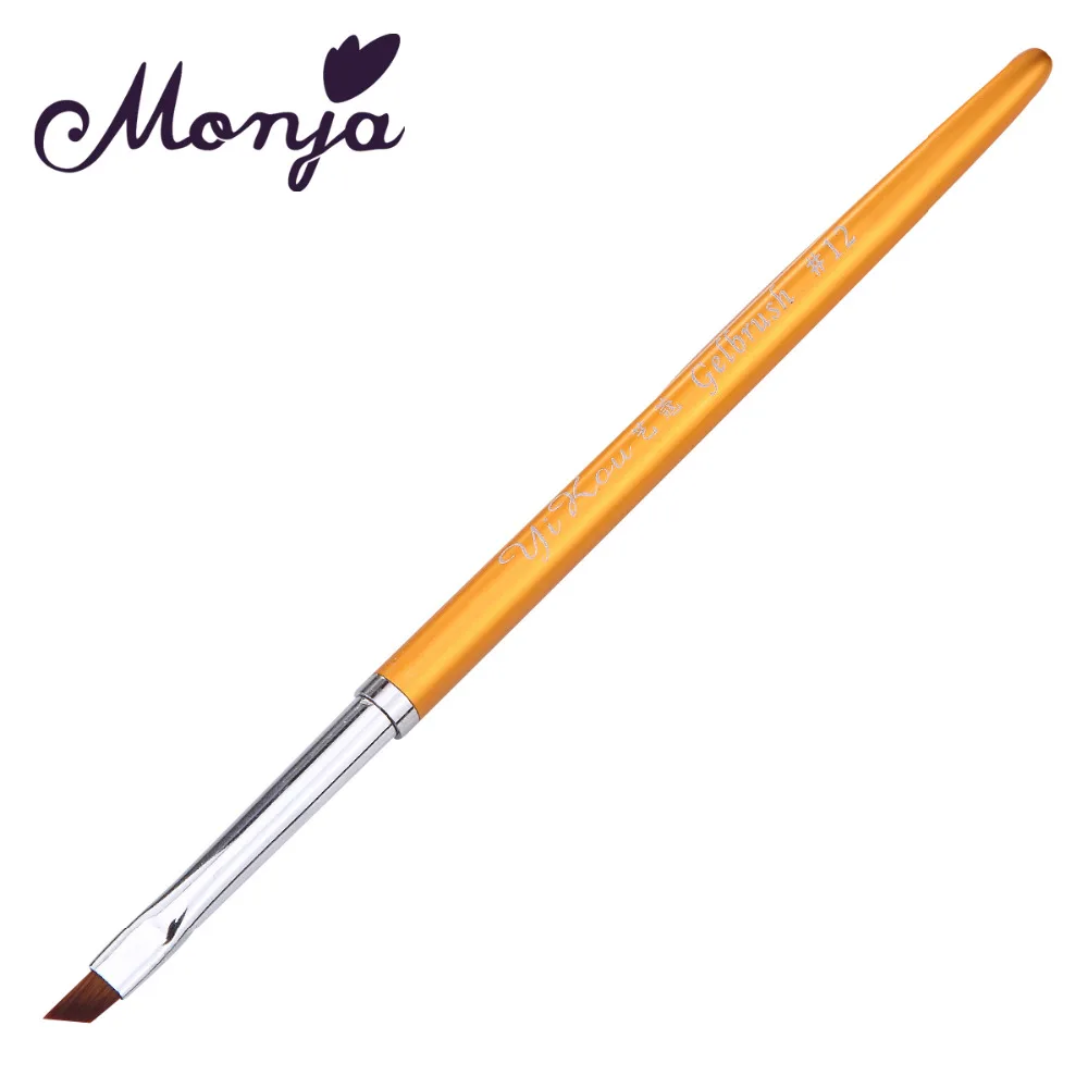 Кисть Monja 12 с золотой металлической ручкой и наклонной головкой для дизайна ногтей, с цветами, для рисования, для домашнего маникюра