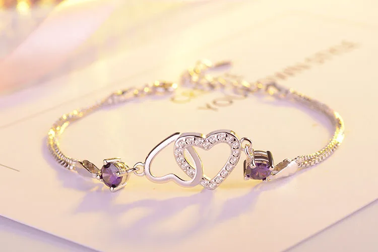 Женский браслет с кристаллами, браслет серебристого цвета с фианитом