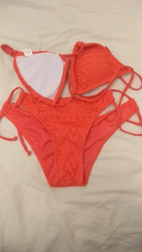 Бикини смотрится на мне красиво. Мне нравится узор и материал. Я не использовал его, но я проверю летом или в спа-салоне, тогда я дам другой отзыв. Спасибо!