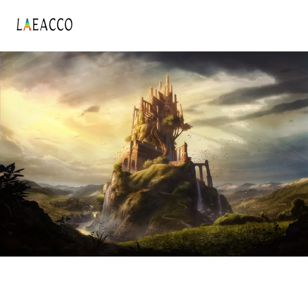 Фон для фотосъемки детей Laeacco, сказочный рисунок, деревня, городской замок, облака, фоны для фотографий