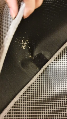 Коврик пришёл довольно быстро. В использовании очень нравится - видно, сколько кот раньше растаскивал по квартире, но теперь это все аккумулируется на этом коврике. Он легкий, вытряхивать его легко. Запаха при распаковке не заметила. Пользуемся около месяца)