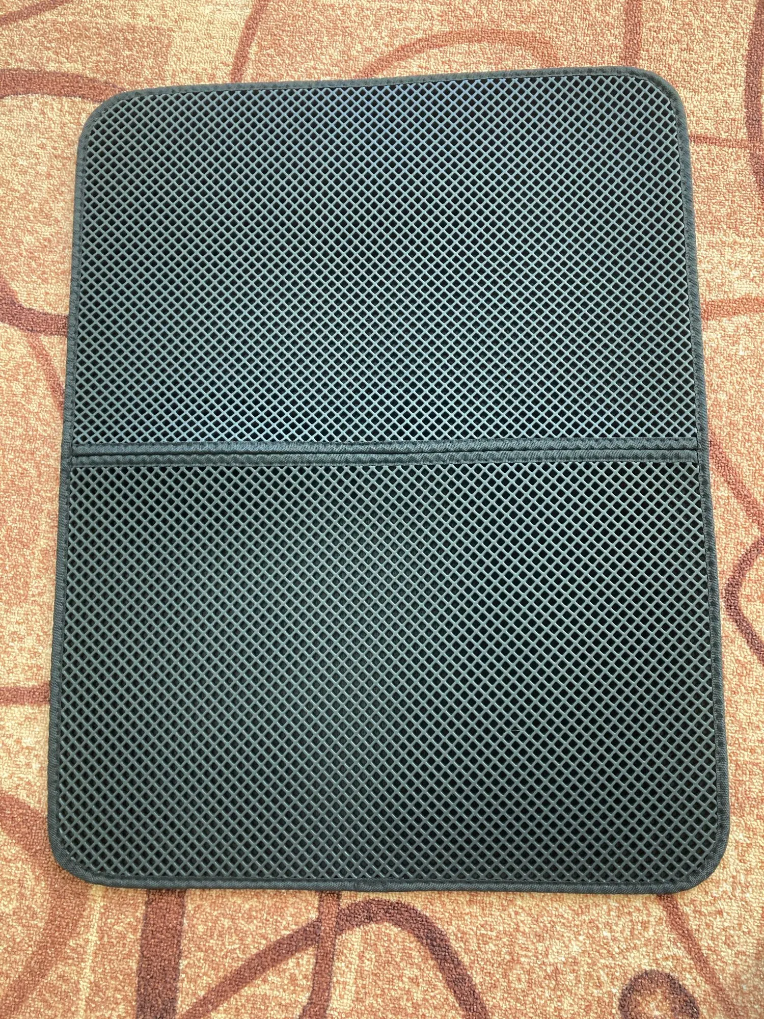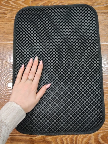 Отличный коврик - ровный, запаха нет, крошки наполнителя с кошачьих лап ловит прекрасно. Плюс быстрая доставка. Рекомендую продавца