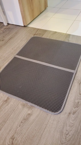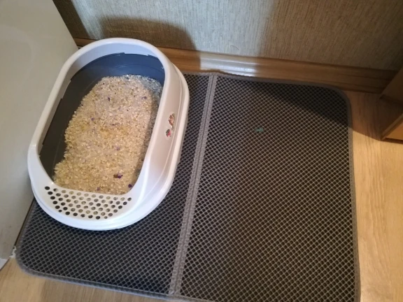Хороший коврик,кошка стала меньше разносить камушки от наполнителя.Кошка сначала боялась наступать на него а потом привыкла.По размеру самый оптимальный.