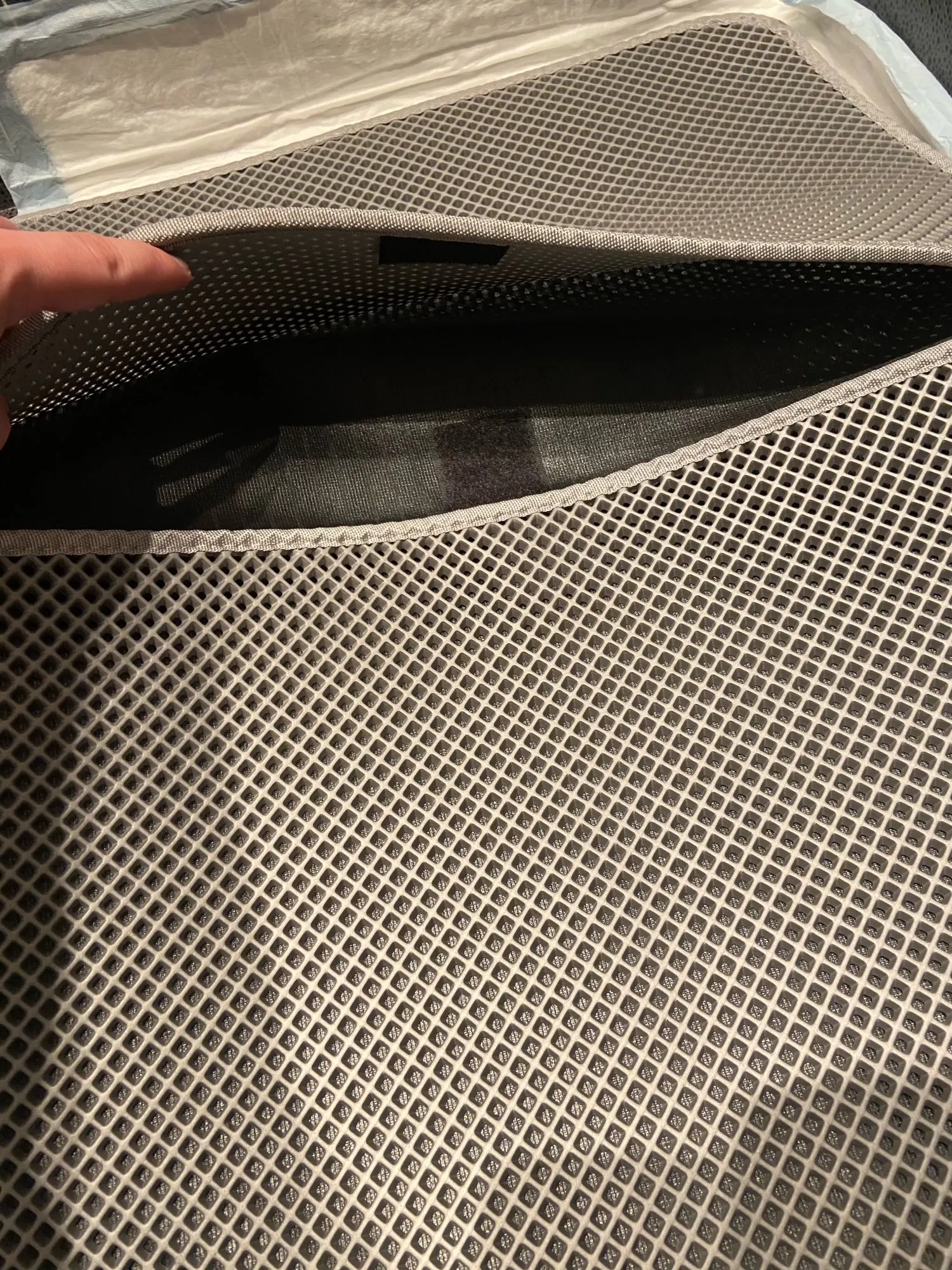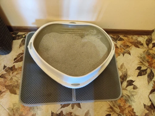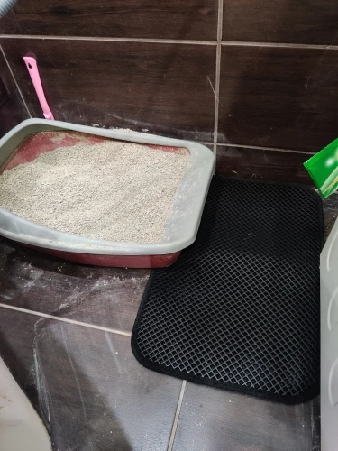 В целом, коврик очень классный. Наша кошка роет наполнитель как дурная, и обычно приходилось убирать горку наполнителя при уборке. Коврик облегчает уборку. 95% выгребанного остаётся в нём. Брала большой коврик, который только в складном виде. Это его единственный минус. Не очень удобно высыпать содержимое обратно в лоток. Но приноровиться можно. В общем, рекомендую коврик