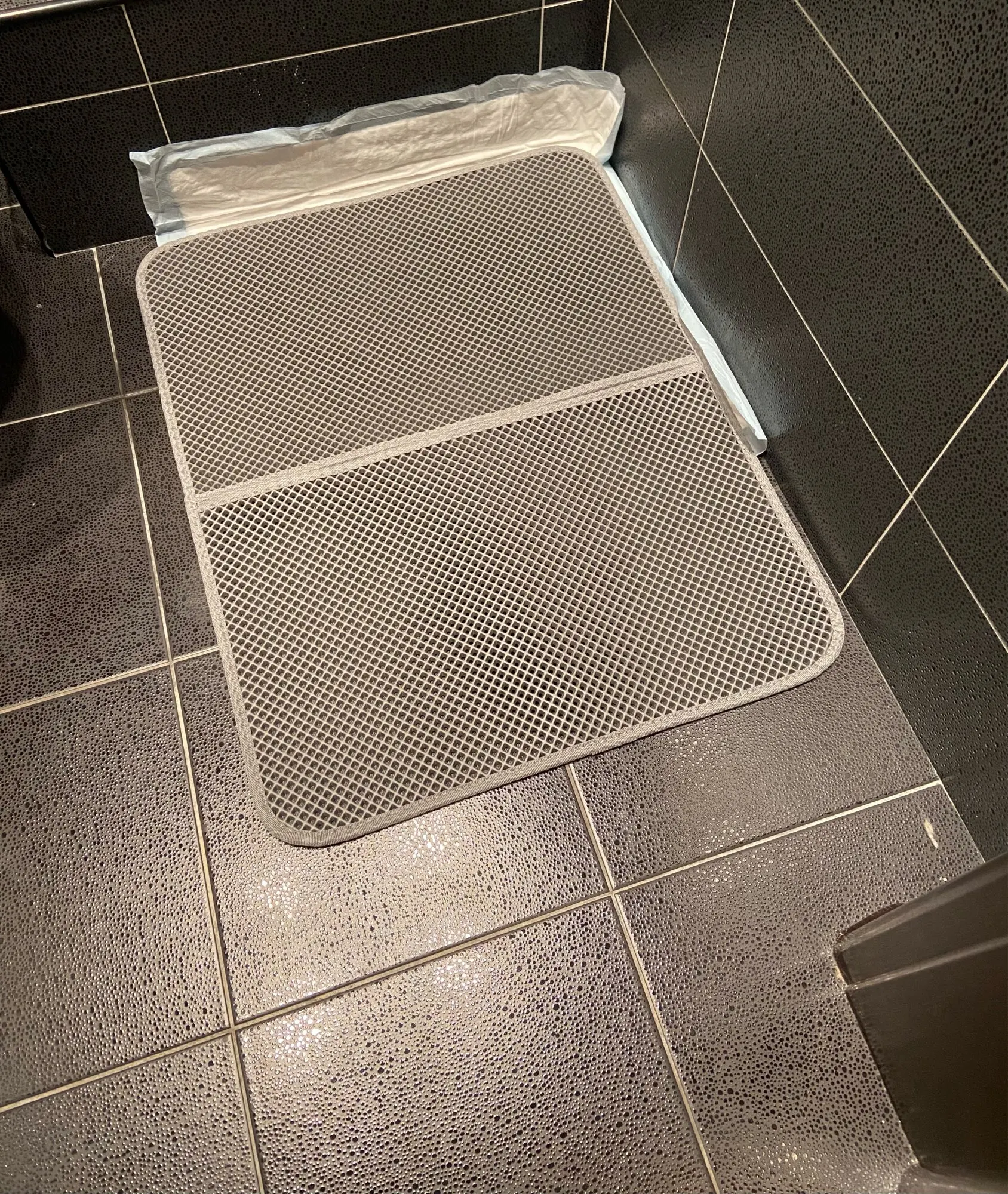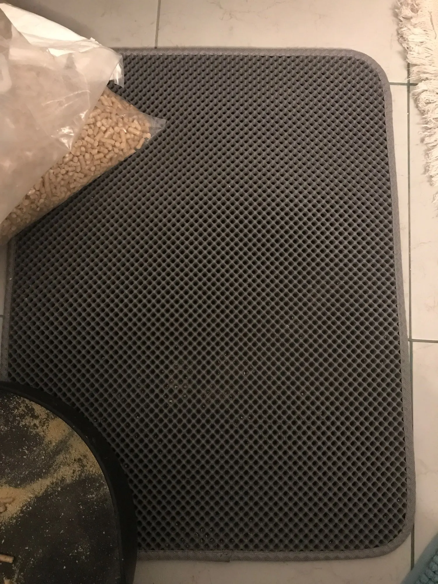Наглядный пример как этот коврик помогает не разносить наполнитель по всем комнатам))