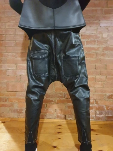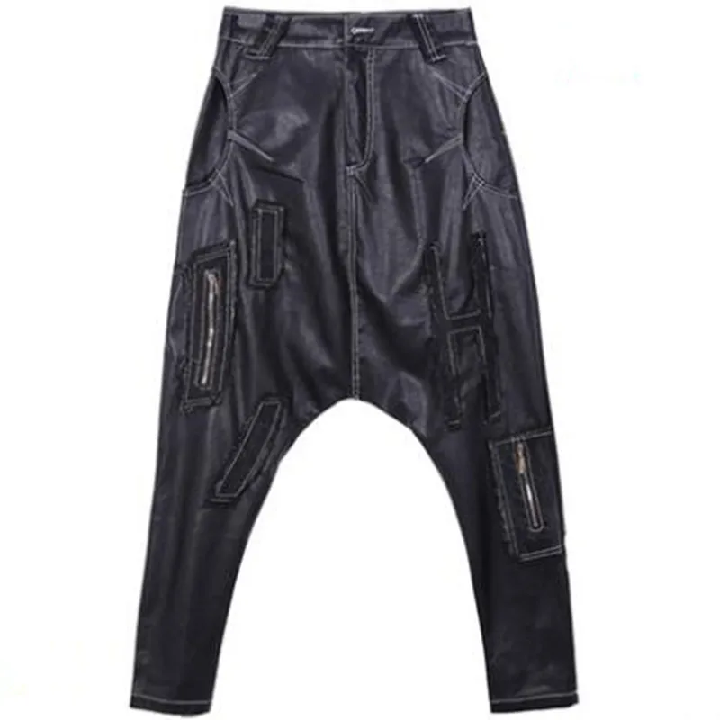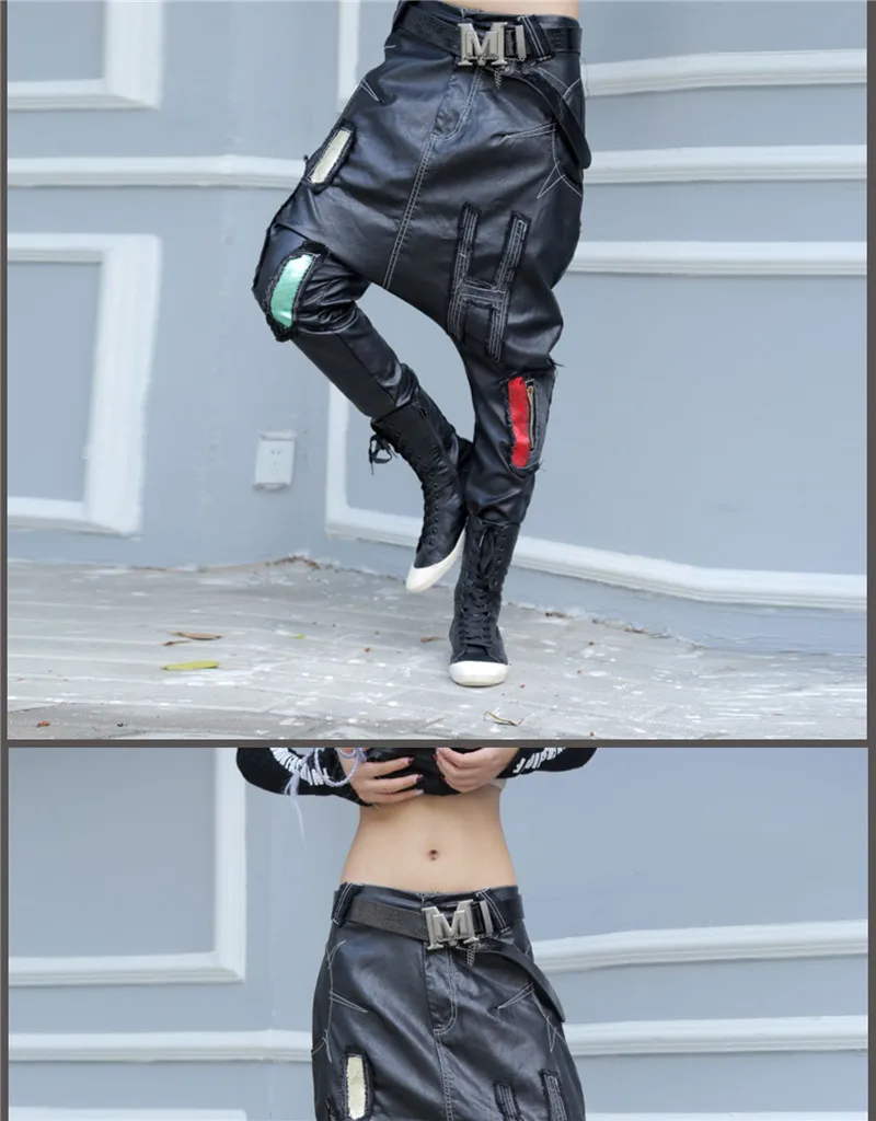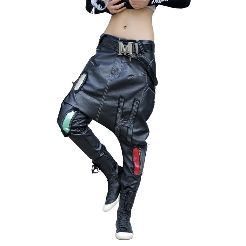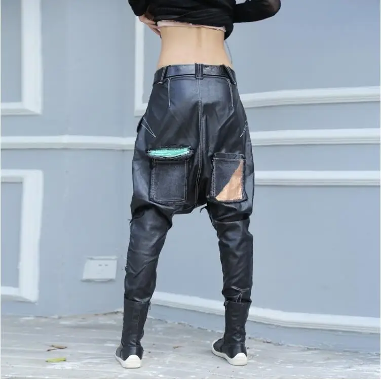 Брюки в европейском стиле в стиле хип-хоп, женские шаровары из искусственной кожи высокого качества, весенние свободные брюки большого размера с подвесной промежностью