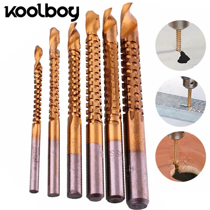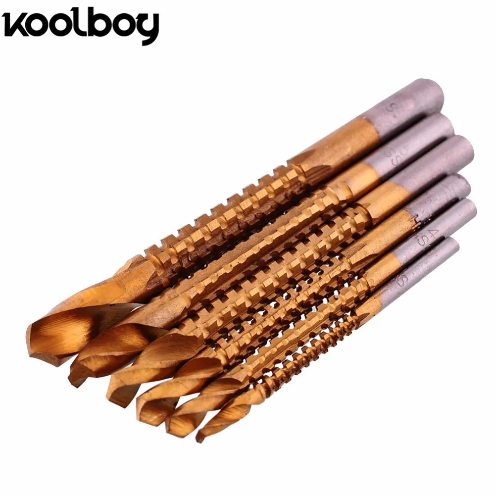 Koolboy HSS 4241 6 шт.компл. твист сверло для столярных работ деревообрабатывающие отверстия сверлильные инструменты с титановым покрытием 345668 мм
