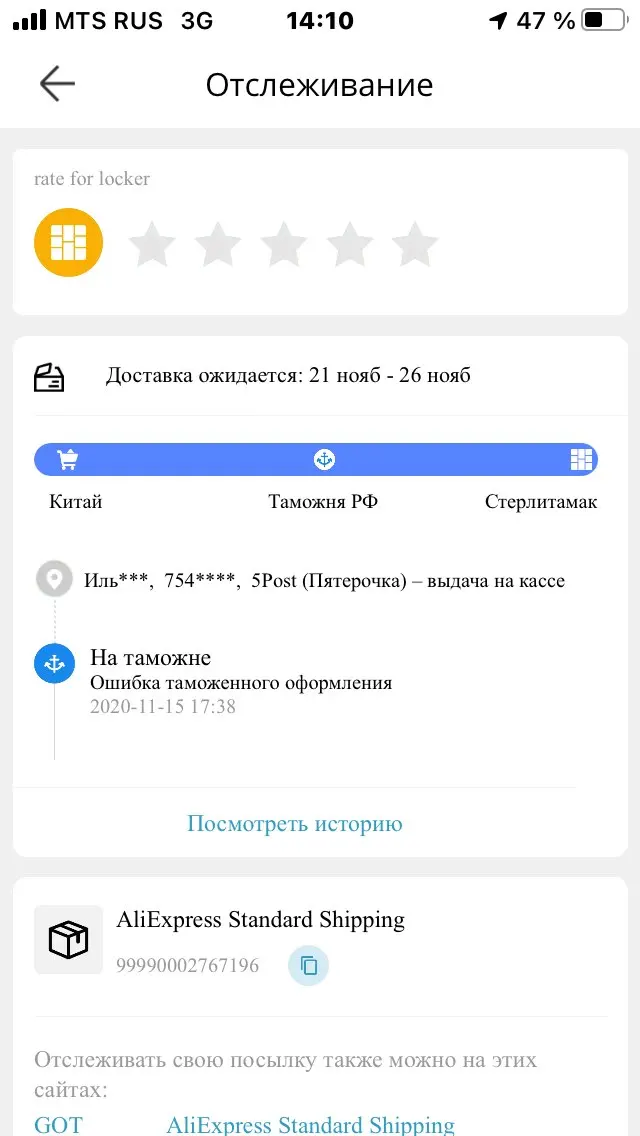 Страна: RU Доставка: Standard Shipping 05.12.2020