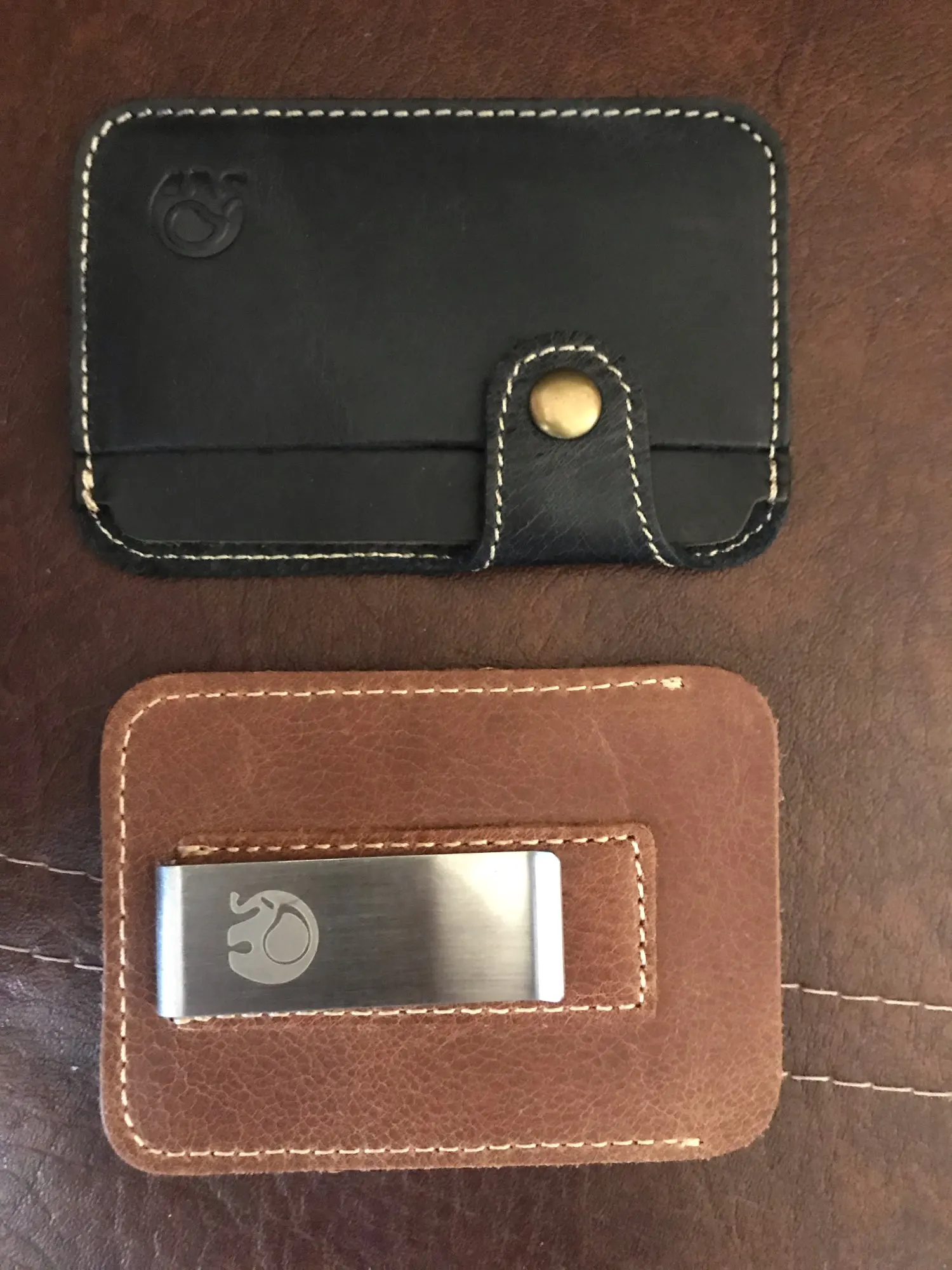 очень компактный и удобный зажим. кожа натуральная. взяла себе и мужу в двух цветах) удобен когда нет с собой сумки, особенно на лето