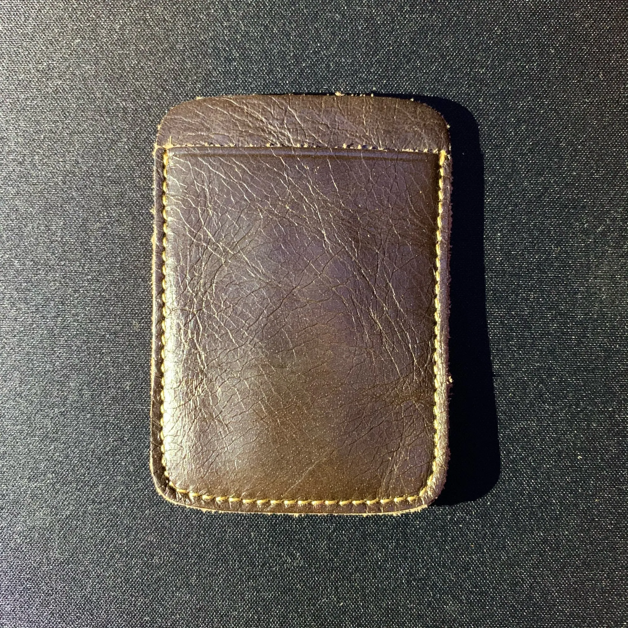 Изделие изготовлено из высококачественной кожи. Хорошая строчка. Металлический зажим немного жестковат. Вмещает 6-8 карт. Хорошее соотношение цены и качества. Доставка занимает некоторое время.