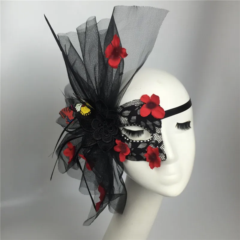 Черная Лолита, цветок, кружево, искусственная бабочка, чехол для лица, маска для вечеринки, клуба, девушки, сценическое исполнение, фотореквизит