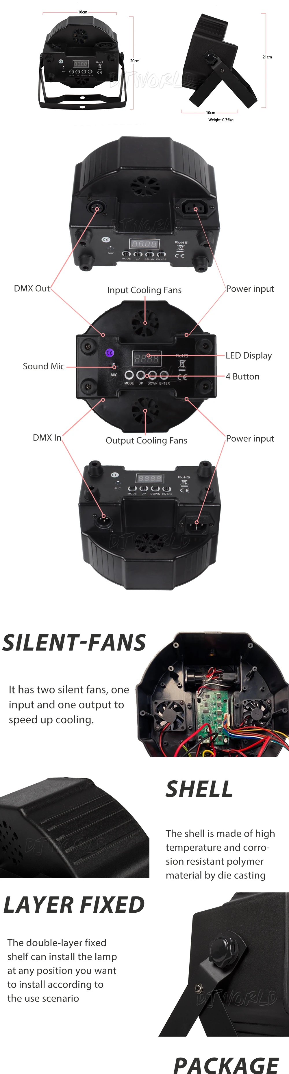 Описание товара:DMX разъемы: 3-pinФункция: DMX, Master/Slave, автономный, автоматический запуск, активация звукаУгол луча: 40 градусов(Если вам не нужно объяснять угол луча, мы по умолчанию отправим вам, тем лучше угол луча 40)Входное напряжение: Автоматическое AC90-240V 50/60 ГцПродукт Размеры: 17.9x11.3x17.8cmВнутренний размер упаковки: 19.7x12.2x19.8смВес: 1 кг/шт.Сертификат: CE & ROHS & UL & SAAШтепсельная Вилка: чтобы отправить вам для удовлетворения требований штепсельной вилки, штепсельной вилки ЕС, штепсельной вилки США, штепсельной вилки Австралии, штепсельной вилки Великобритании и так далееИспользование помещений: сцены, ночные клубы, дискотеки, отели, магазины, семейная вечеринка на день рождения, подходит для ди-джеев и т. Д.Содержимое упаковки:1 × светодиодный светильник1 × руководство пользователя1 × 1,2 м (3,9 футов). Питание кабель