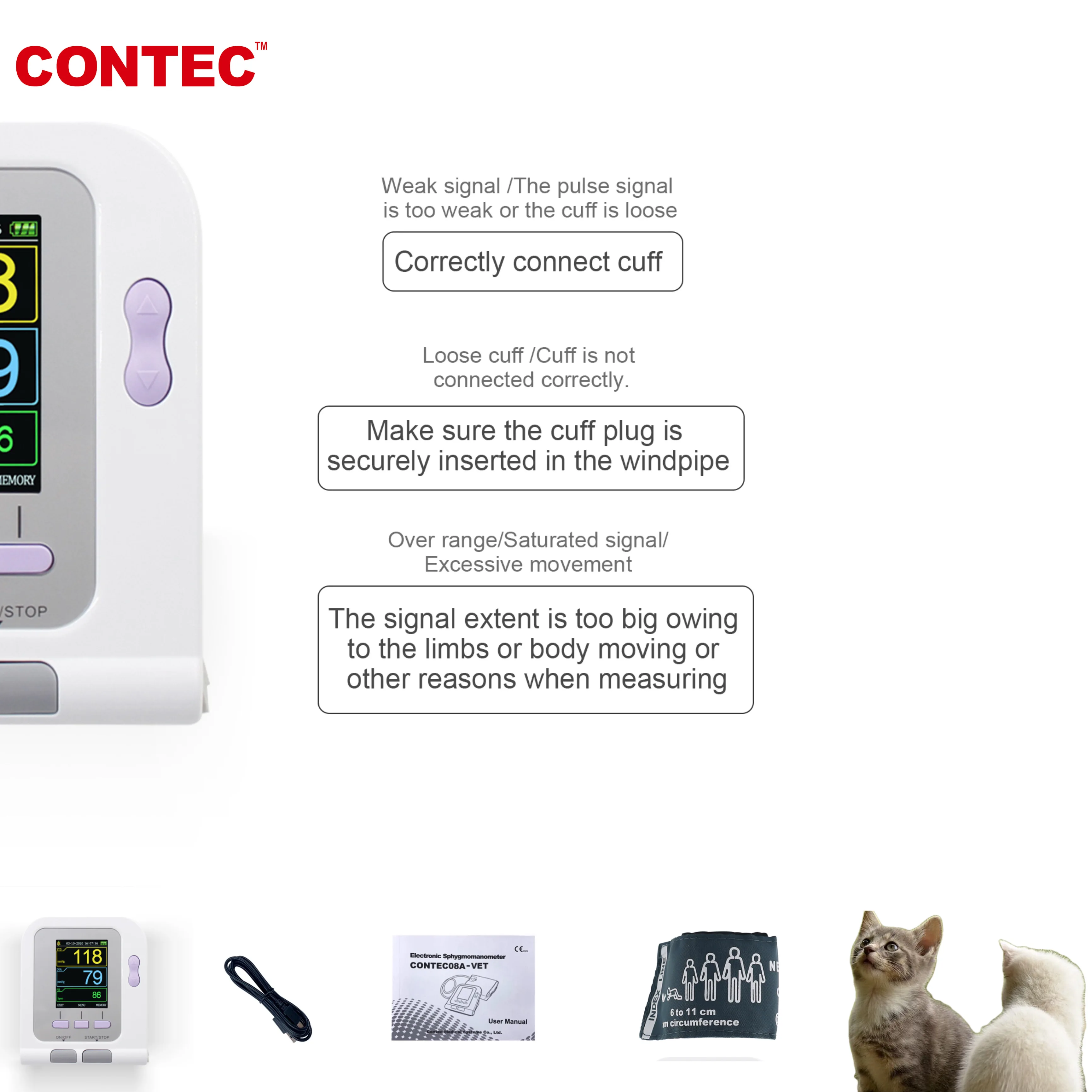 Цифровой монитор артериального давления и сердечного ритма CONTEC08A-VET + 3 манжеты