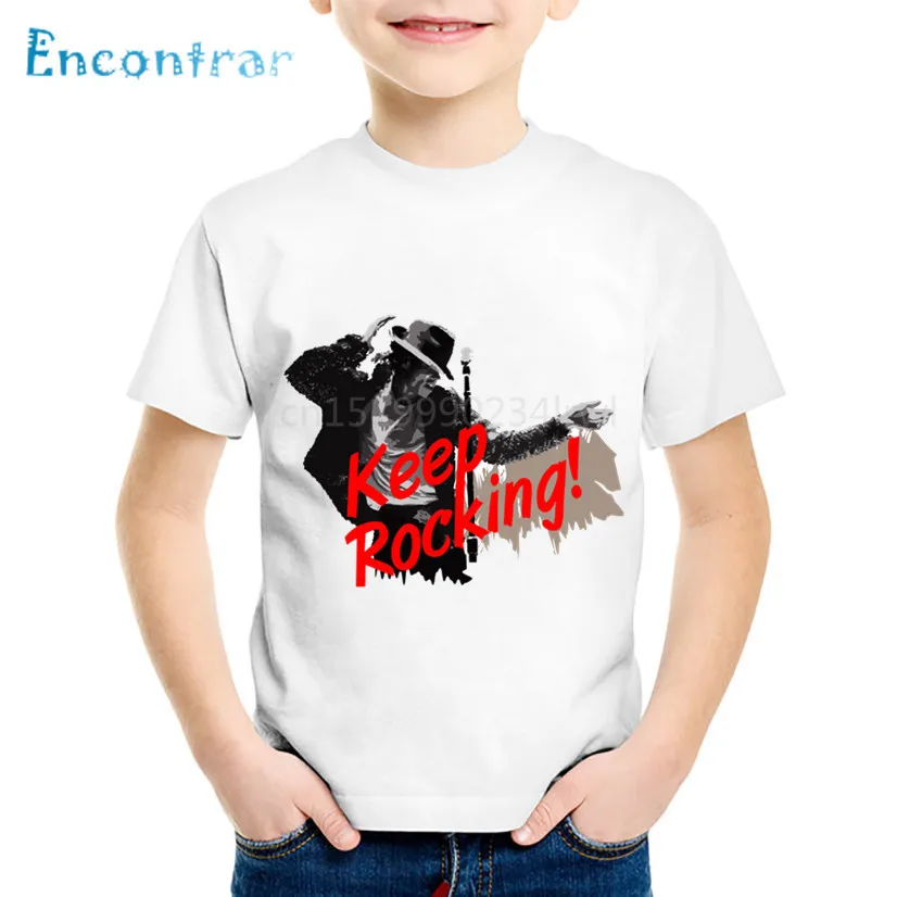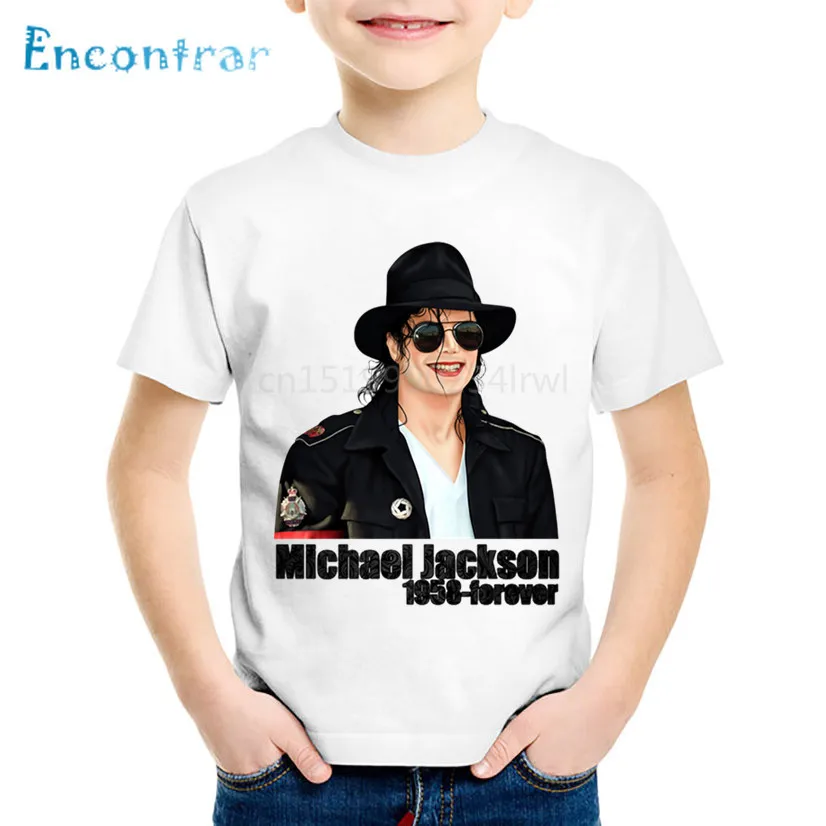 Детская мода Майкл Джексон Рок н-ролл крутая футболка детские летние топы для мальчиковдевочек повседневная одежда, oHKP5145