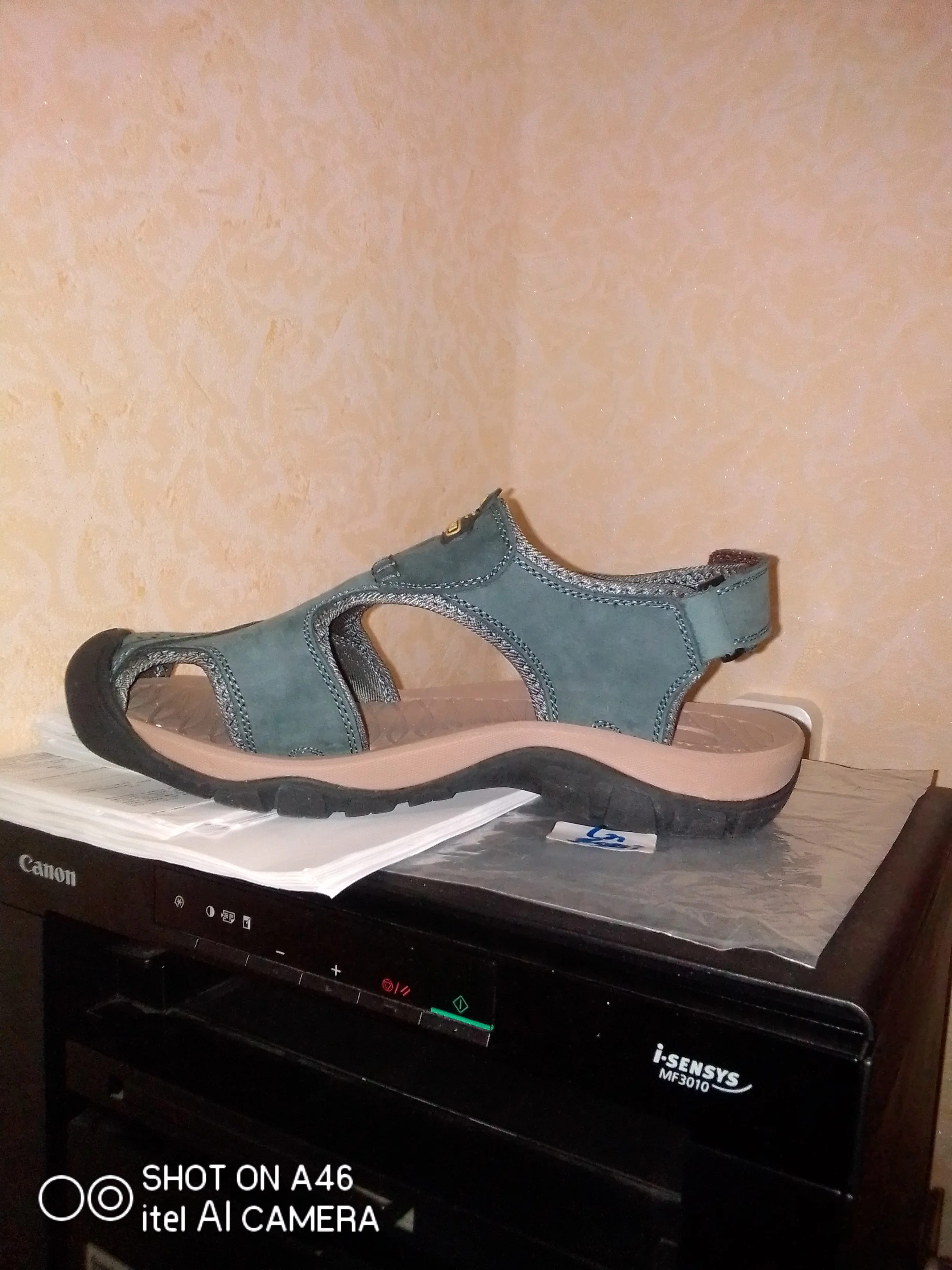 Бесплатная доставка, в консолидированой посылке, заняла ровно один месяц. Сандали обошлись, со всеми купонами, чуть более 600р. За эти деньги, ничего подобного, в наши магазинах, не найти. В целом, обувь сделана довольно добротно. На счёт кожи, ничего не скажу, так как, не особо понимаю, как это можно проверить на сандалиях. Незаметное место, чтобы поджечь, не нашёл. Проверить качество, удастся тоже только летом, где то через полгода. При тщательном осмотре, брака не обнаружил. Описанию и фото, сандали полностью соответствуют. Размер подбирал по размерной сетке продавца, и не ошибся. На мою длину стопы 25,5см, этот размер подошёл идеально. У модели есть свои плюсы и минусы, но о них придется написать в дополнении к отзыву, после, хотя бы месяца эксплуатации. А пока, продавец получает заслуженные 5 звёзд.