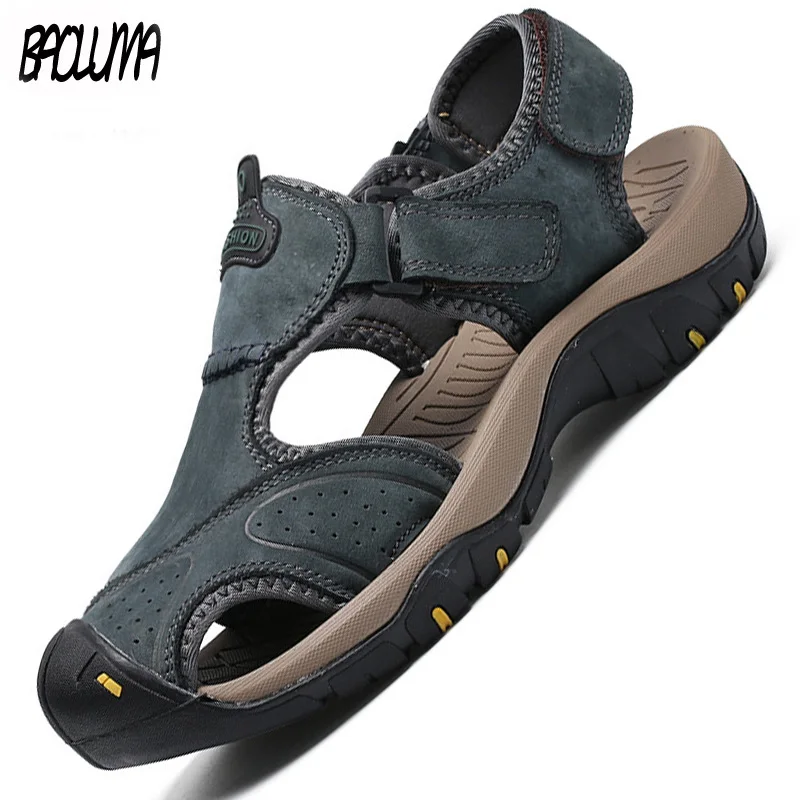 Сандалии мужские из натуральной кожи, роскошные дышащие уличные шлепанцы, летняя повседневная обувь