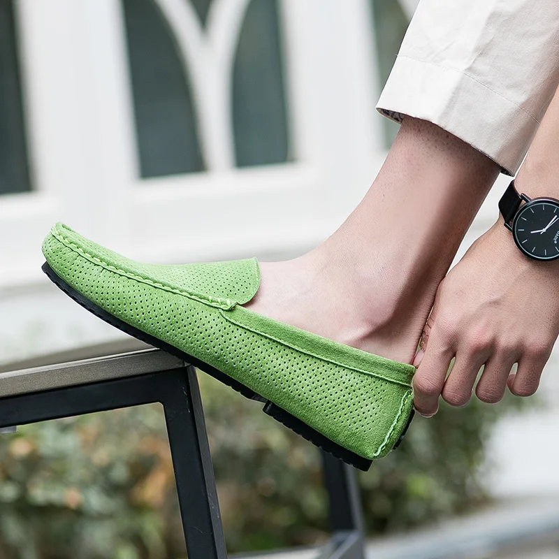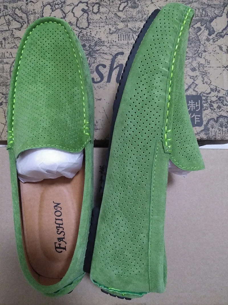 Лоферы мужские AGSan, из натуральной кожи, летние, дышащие, зеленого цвета