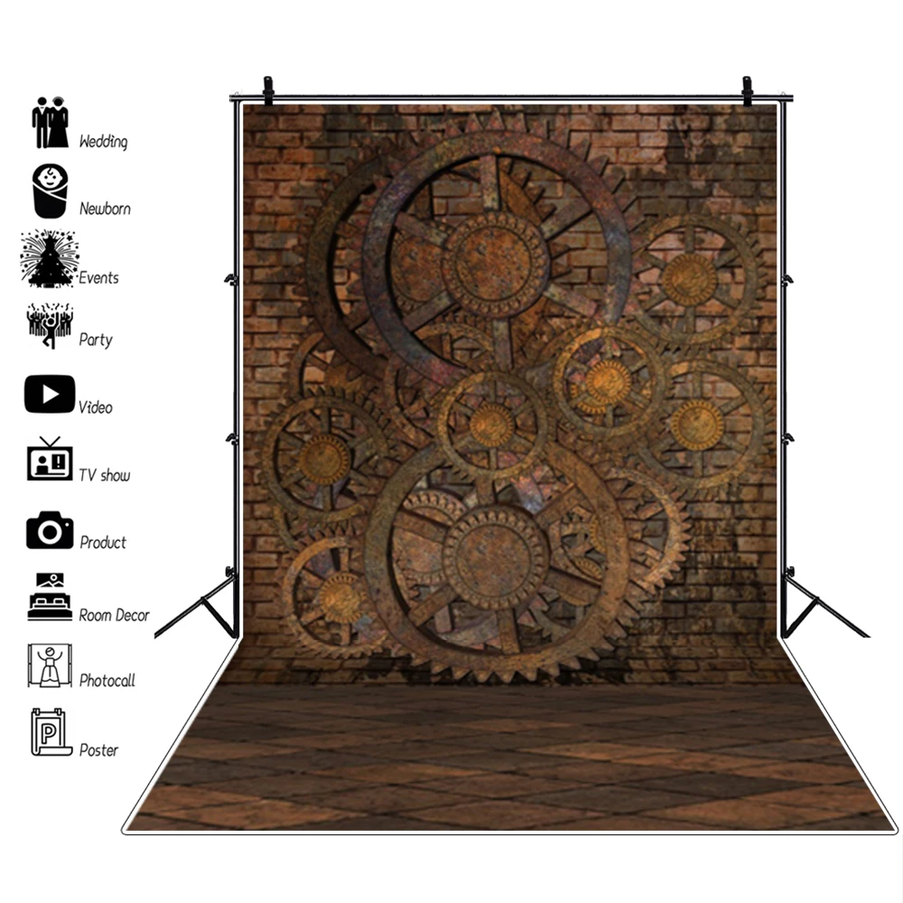 Фон для фотосъемки с изображением старой кирпичной стены стимпанк дома ржавые снасти винтажный портретный Фотофон
