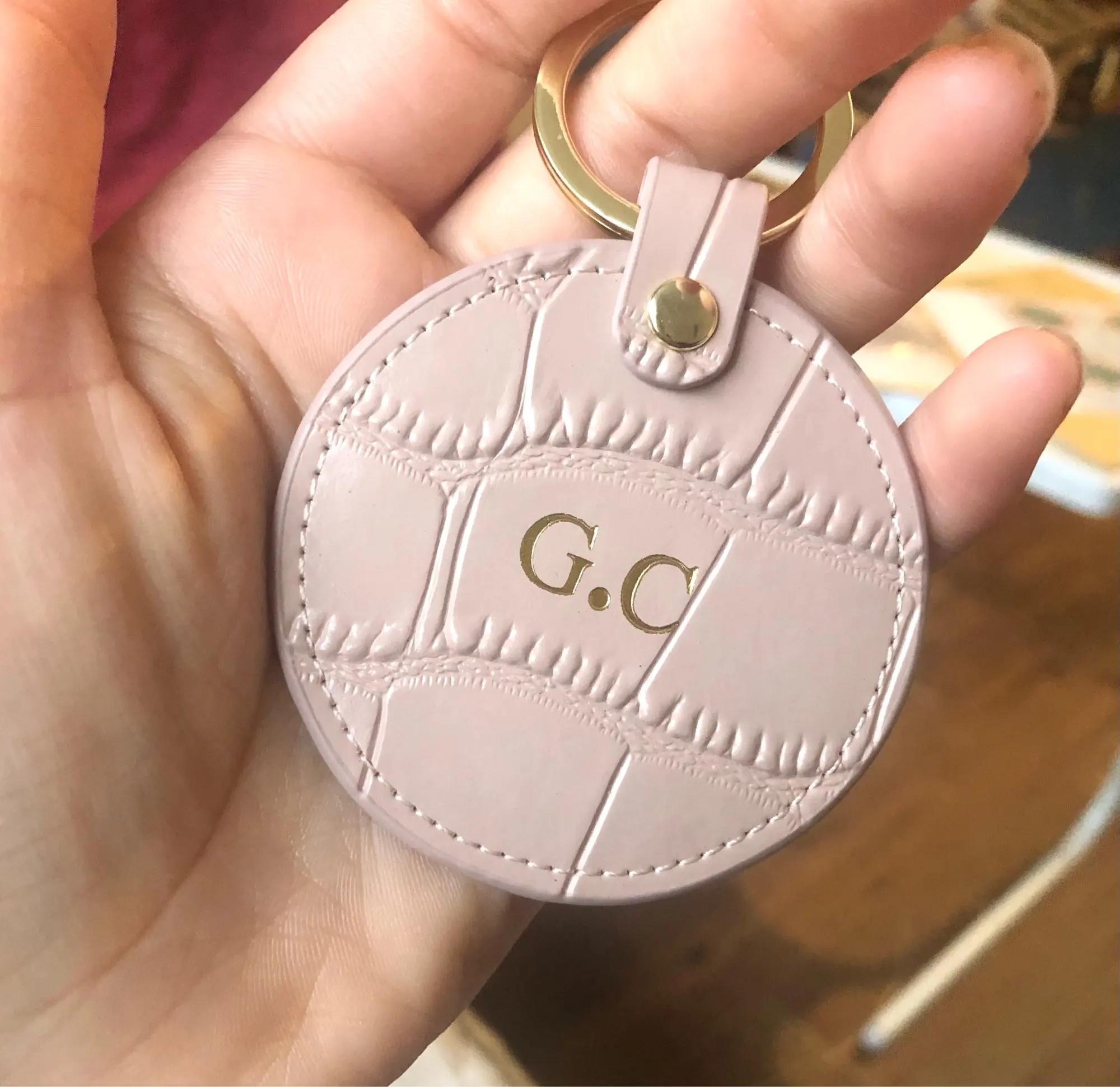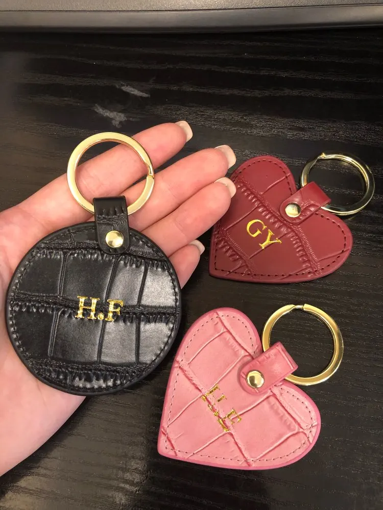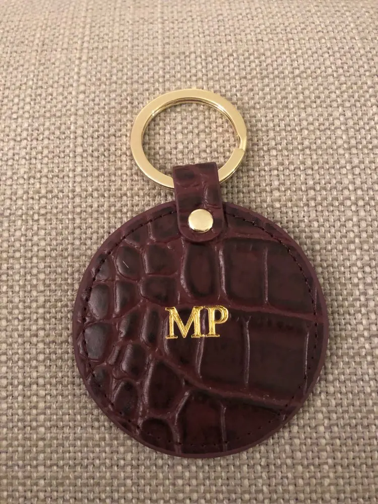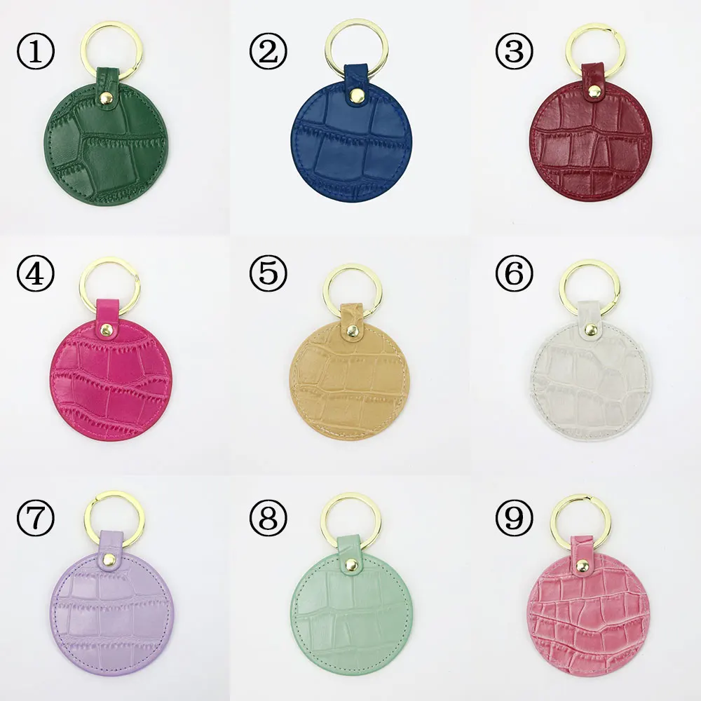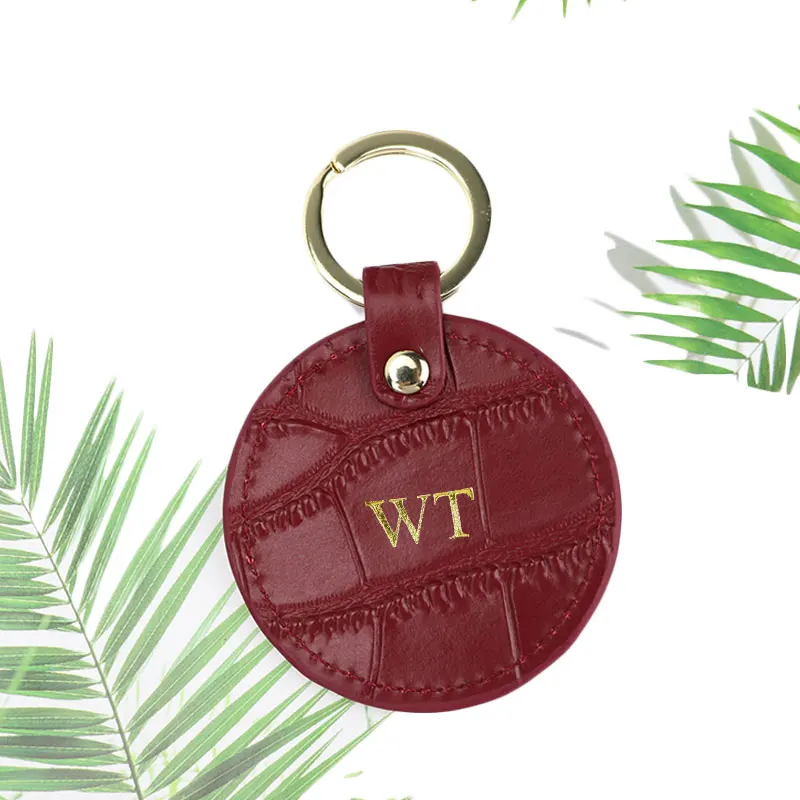 Новый дизайн, бесплатный брелок для ключей с надписью под заказ, под крокодила или сафьяну, круглый кожаный брелок для ключей, кошелек для ключей