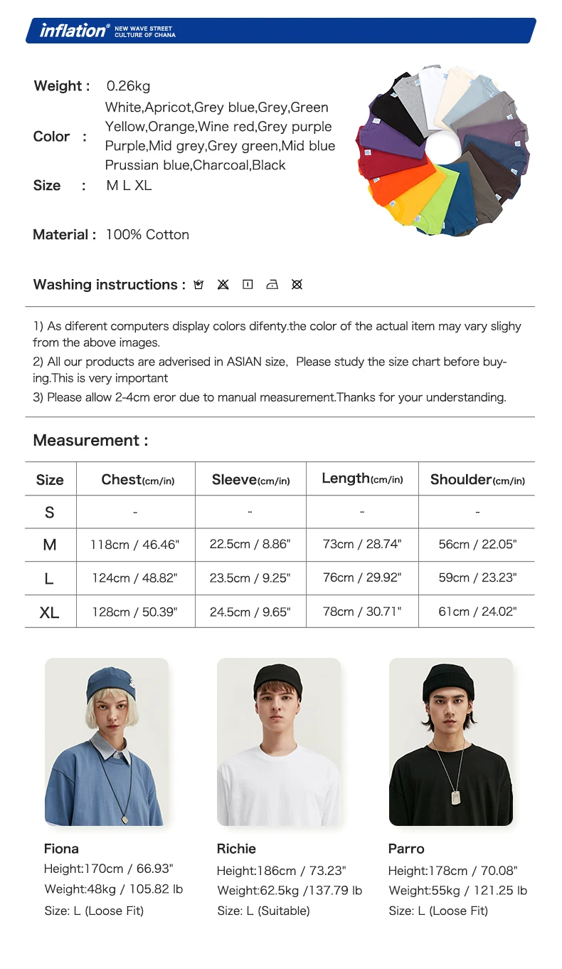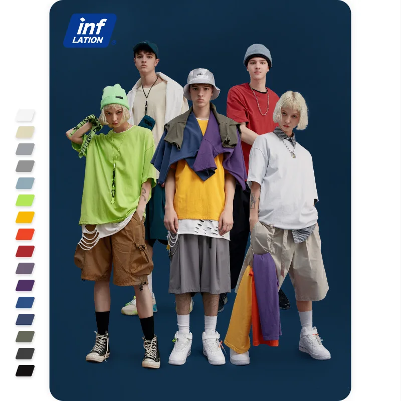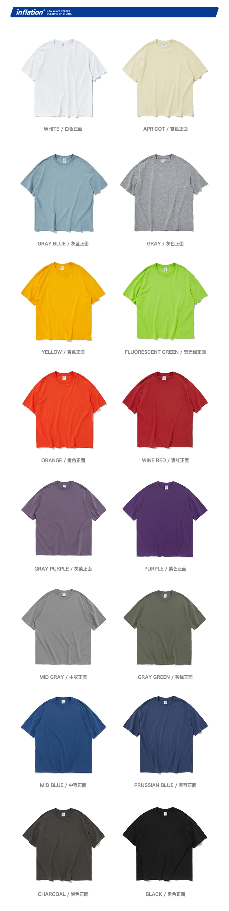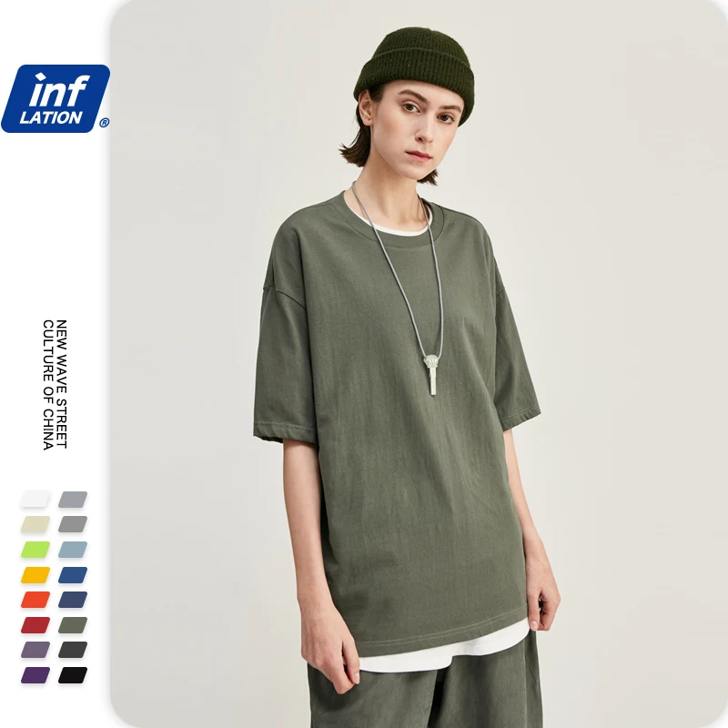INFLATION летние мужская одежда футболка мужская Хлопковые негабаритные модные футболки в стиле хип-хоп, яркие цвета, футболка, однотонная свободная Базовая футболка унисекс, футболки для супружеской пары 8193 S