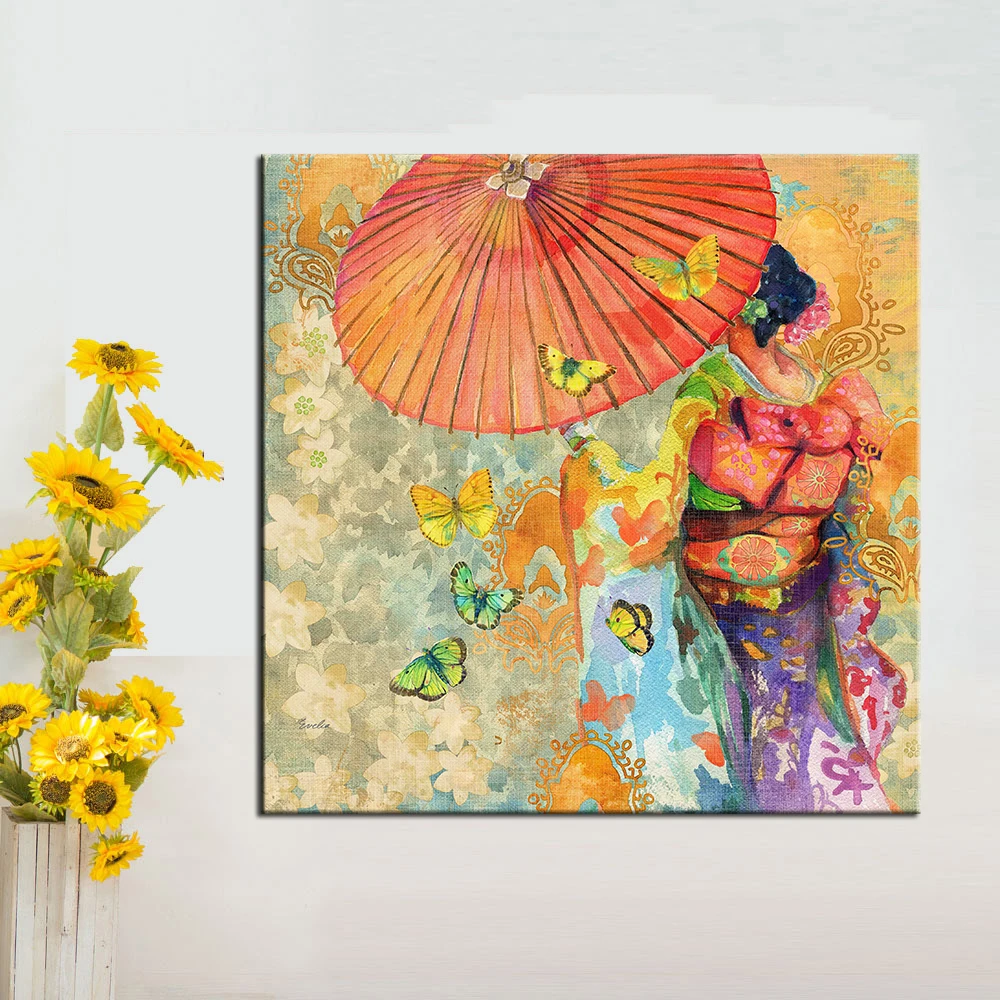 Японское кимоно QKART, картина маслом на холсте, Настенная картина для гостиной, настенные художественные плакаты и принты без рамок