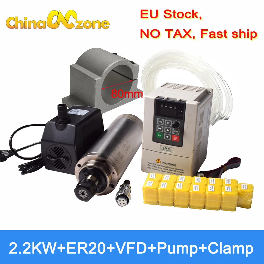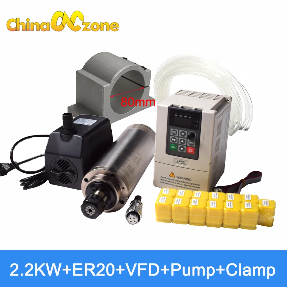Фрезерный электродвигатель шпинделя er20 с ЧПУ, 2,2 кВт VFD, 80 зажимов, водяной насос, 13 шт. ER20, 1 м кабель для фрезерного станка с ЧПУ