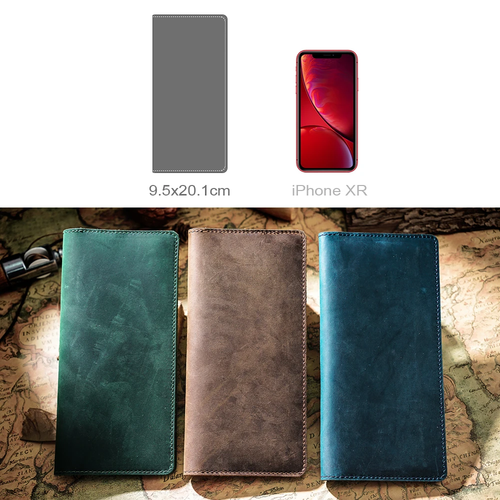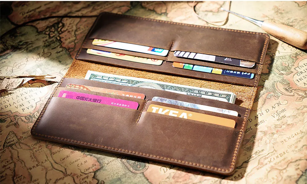 Moterm, длинные бумажники из натуральной кожи Crazy Horse, мужской кошелек двойного сложения, Винтажный Мужской кошелек