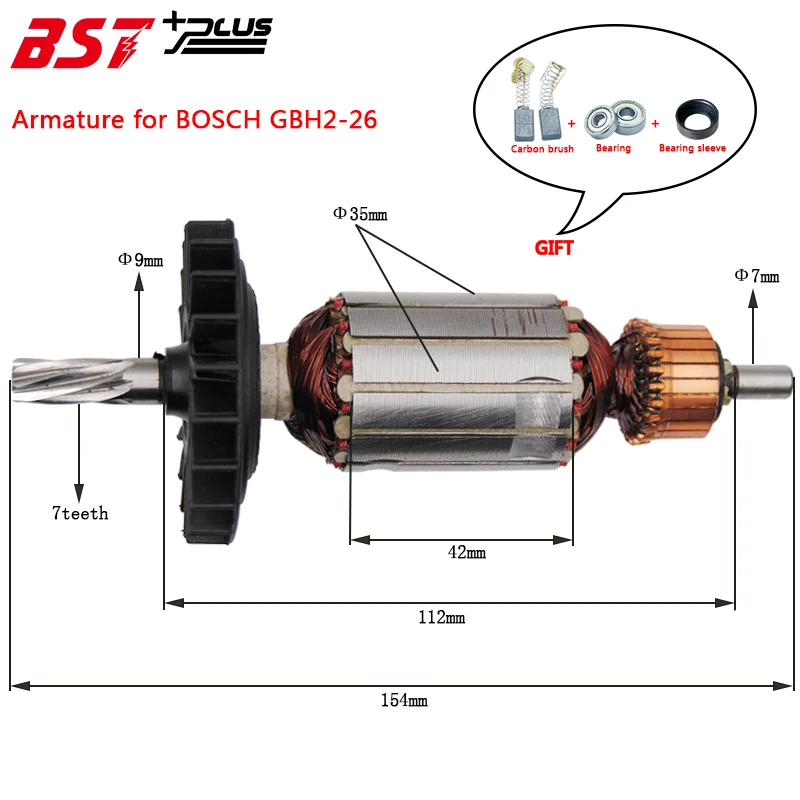 Название: ротор/арматураПодходящая модель: подходит для BOSCH GBH2-26 роторный молотокНапряжение: AC220V-240VМатериал: сталь. Медь. Пластик