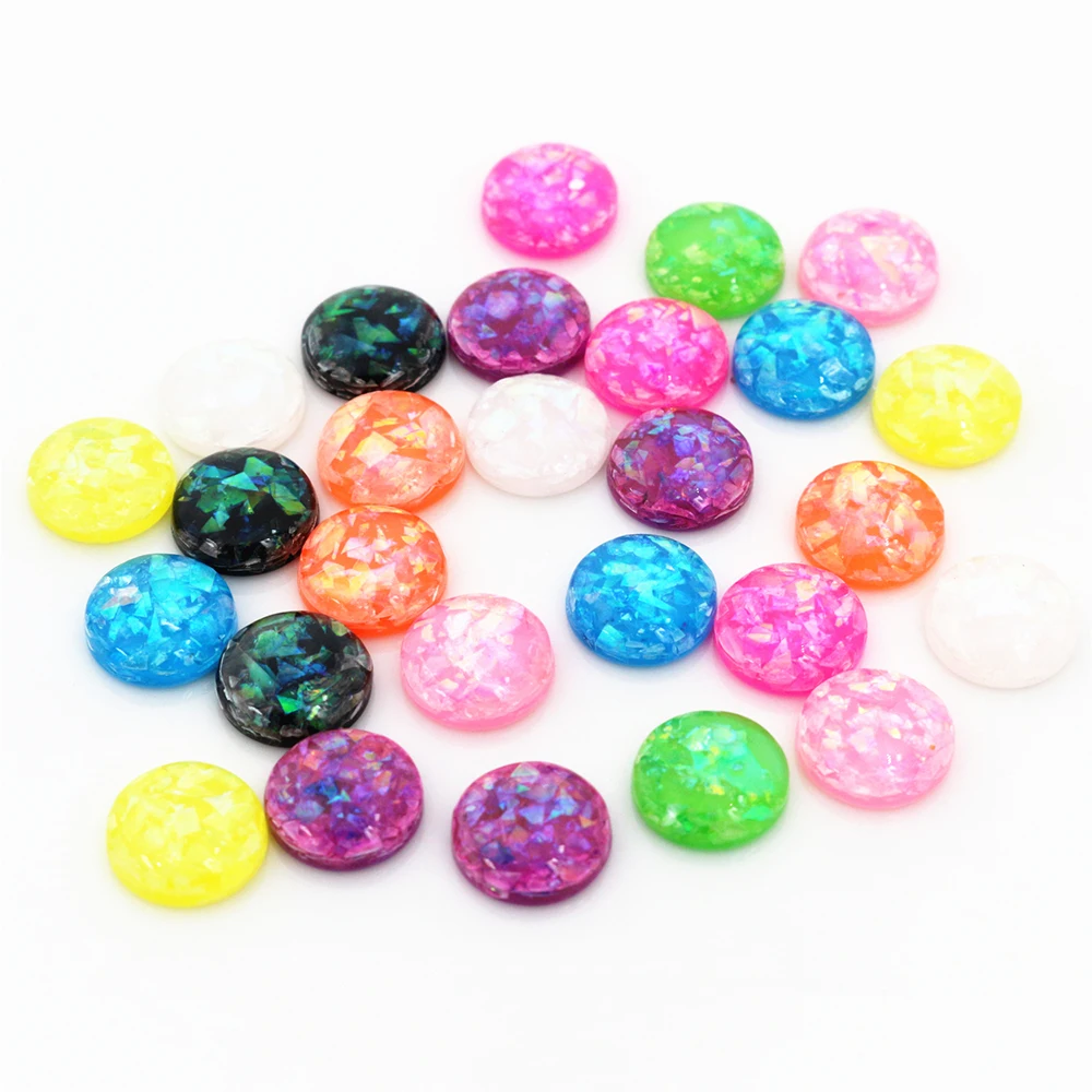 Новая мода 10 мм 40 шт.лот смешанные цвета Встроенная металлическая фольга плоская задняя Смола Кабошоны камео V7-03