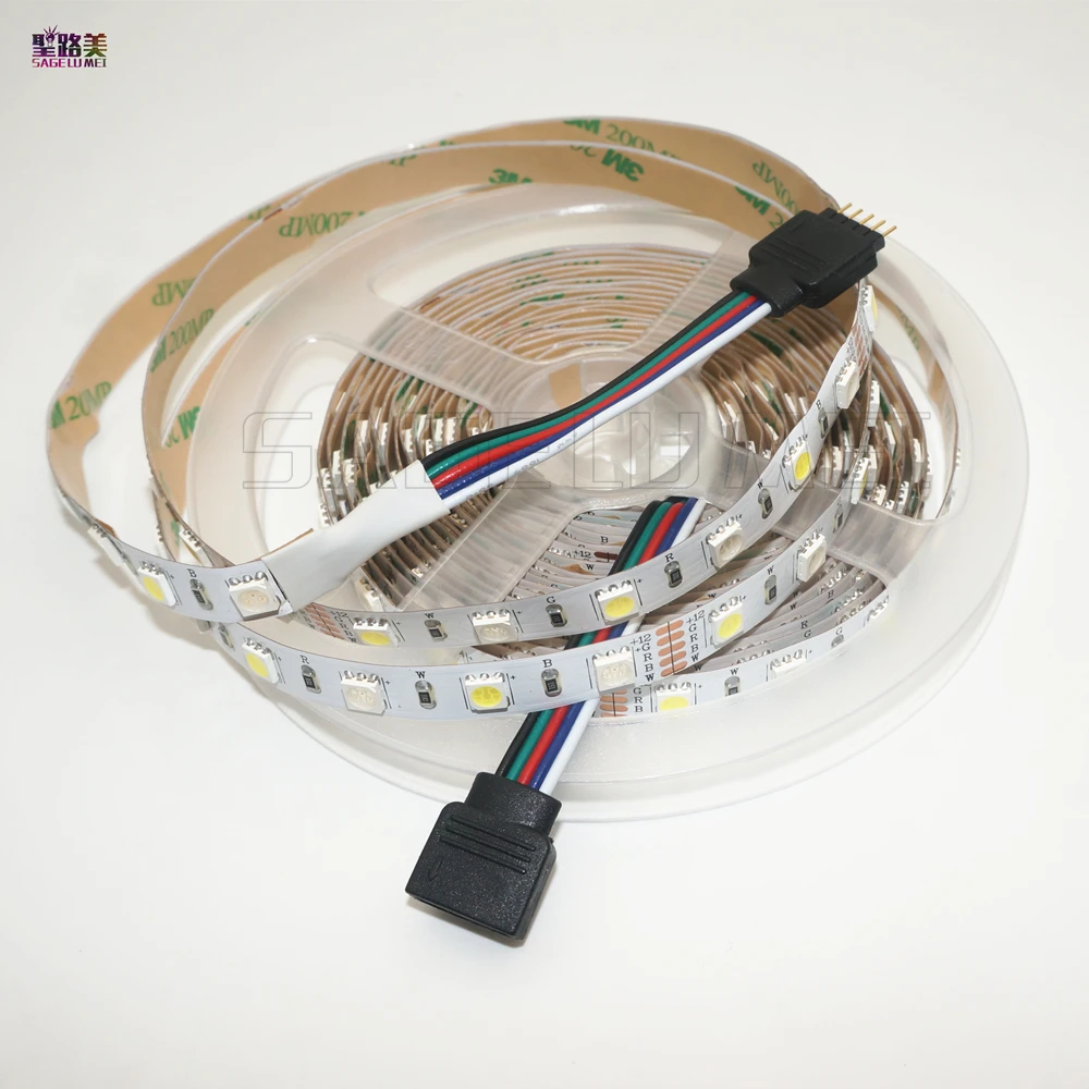 5 м RGBW IP67:5 м 60 светодиодов/м 5050 RGB +Белый 12V Водонепроницаемый носки без пятки