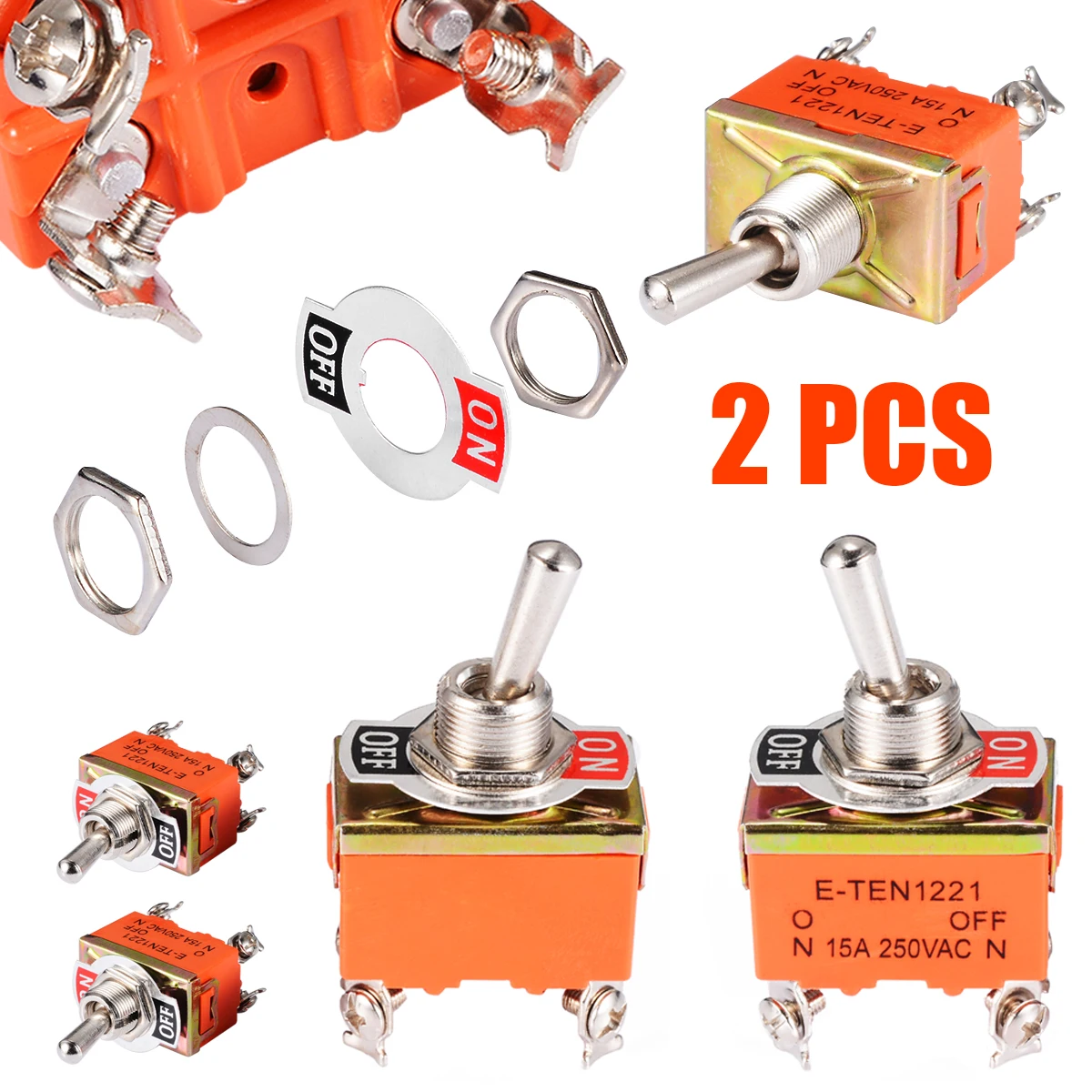 Прочный тумблер, переключатель переменного тока 250 в 15 А, ВКЛ.ВЫКЛ., 2 положения, 4 Винтовых клеммы DPST, переключатели для импульсных ламп, двигатели Mayitr, 2 шт.