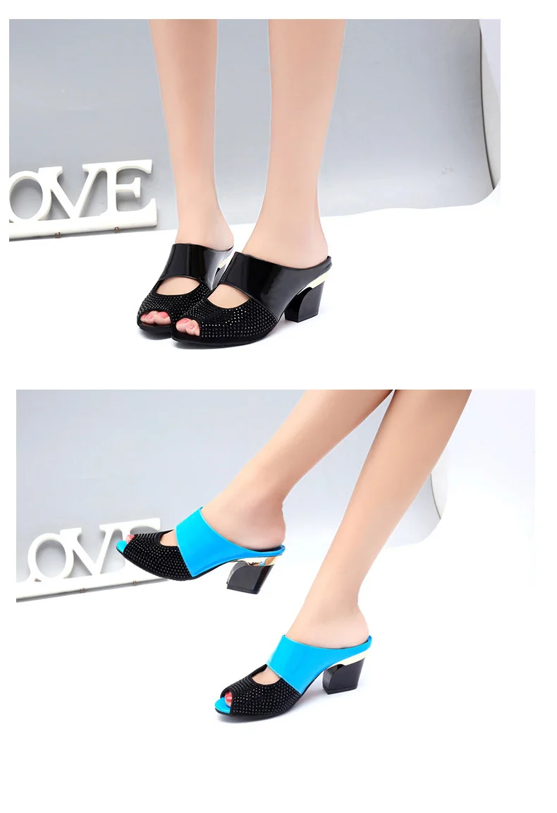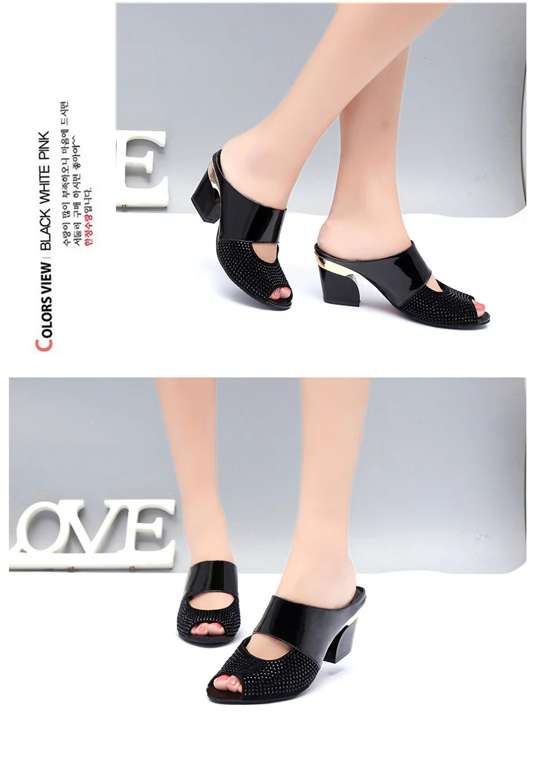 Сандалии женские на квадратном каблуке, модные шлепанцы, открытый носок, без застежки, блестящие тапочки, лето 2022