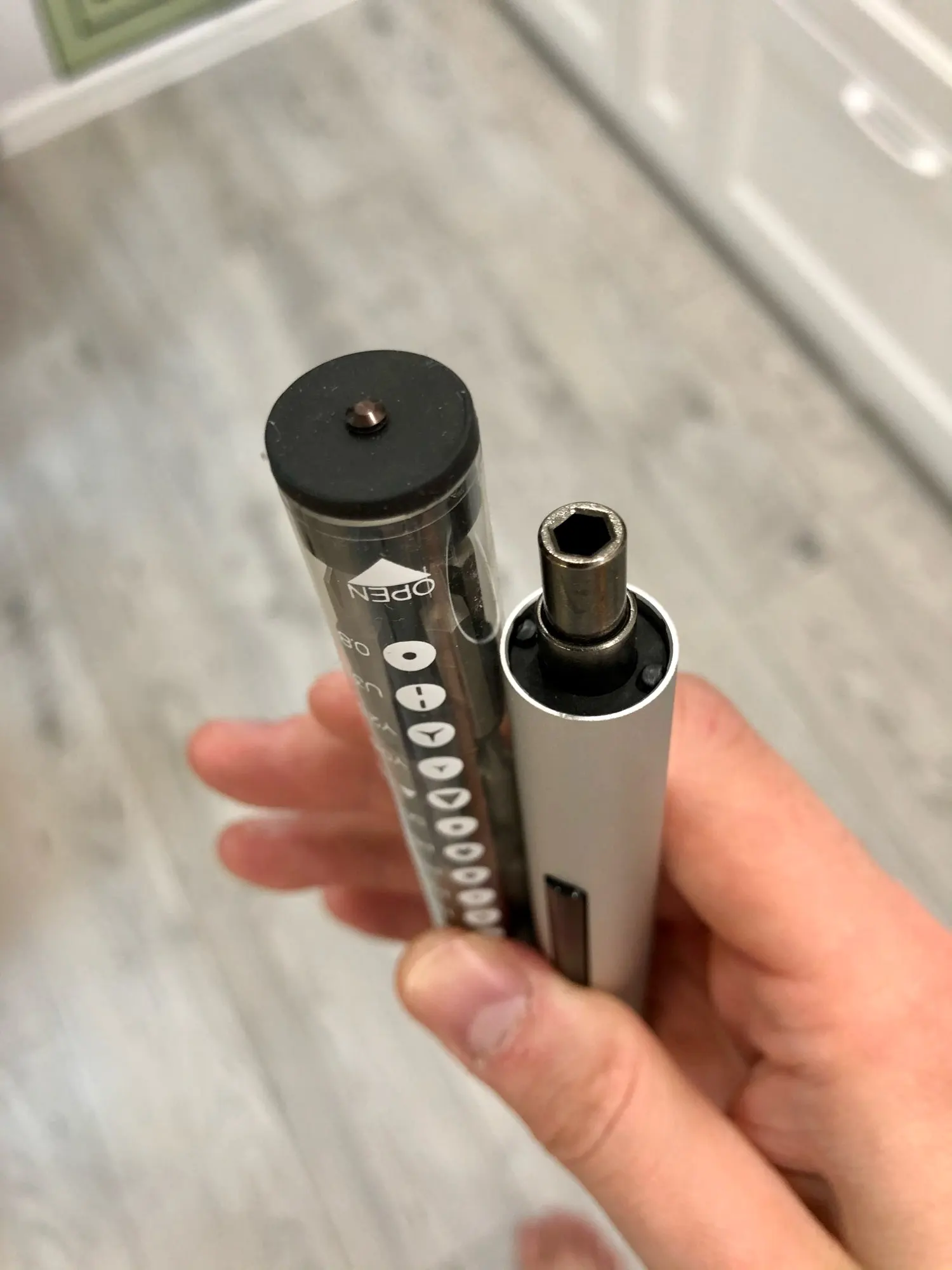 отличная отвертка, у меня такая маленькая в первые. сразу применил на ноутбуке. все как нужно открутила нужны 2 мезинчековые батареи.