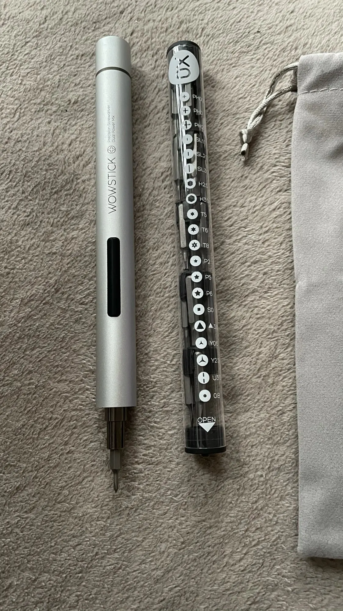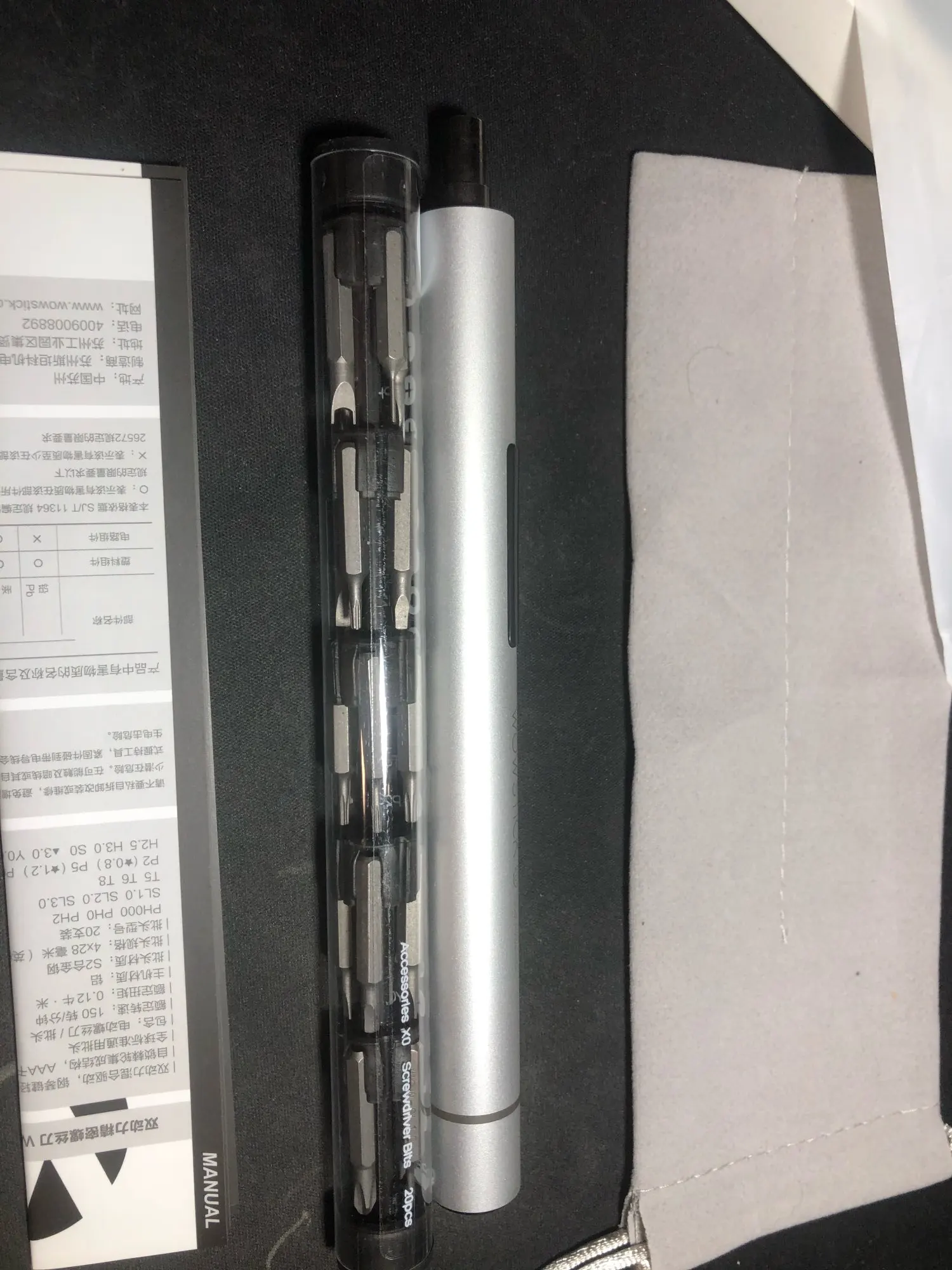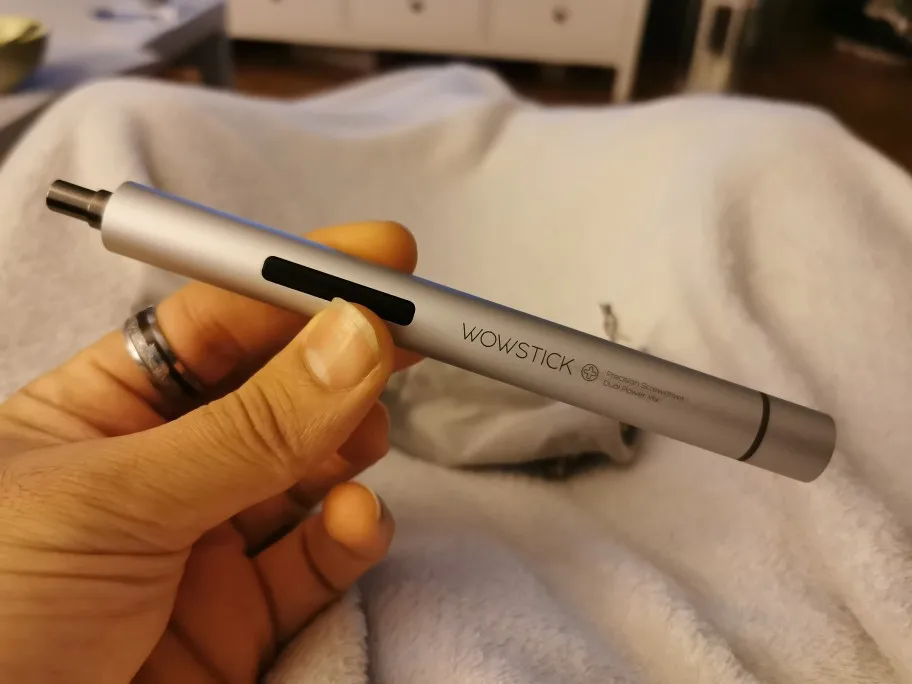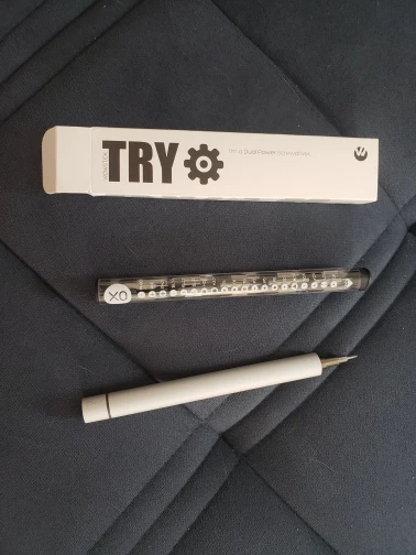 Очень хорошая и компактная прецизионная электрическая отвертка, работает с 2 батареями AAA (не входят в комплект), она поставляется с множеством наконечников и красивым чехлом, чтобы сохранить ее и взять ее куда угодно.