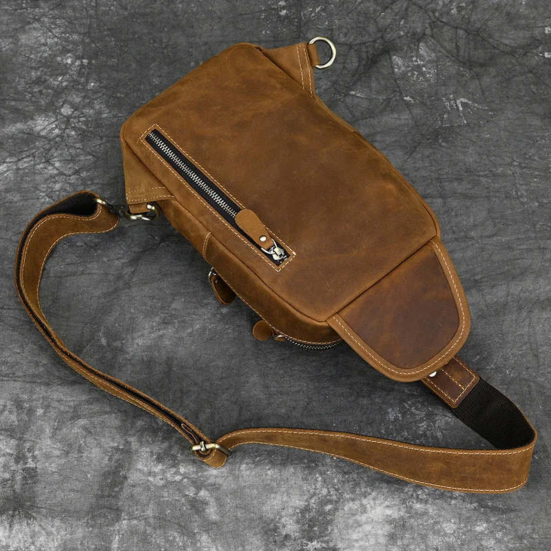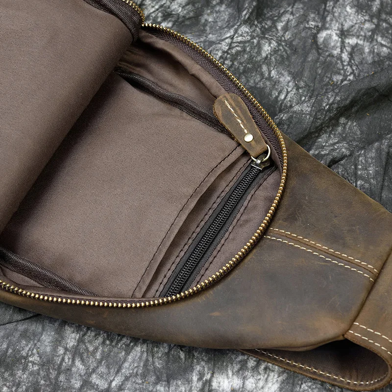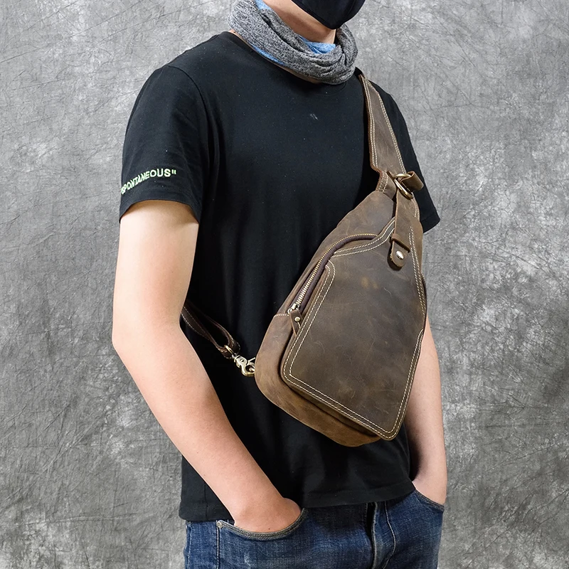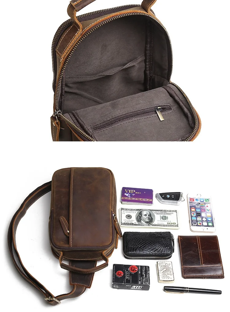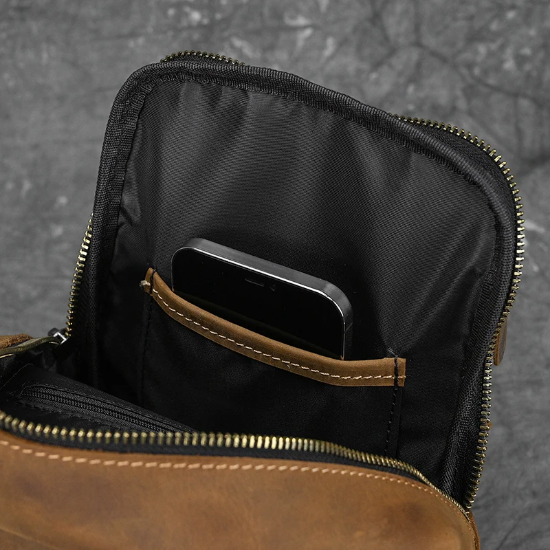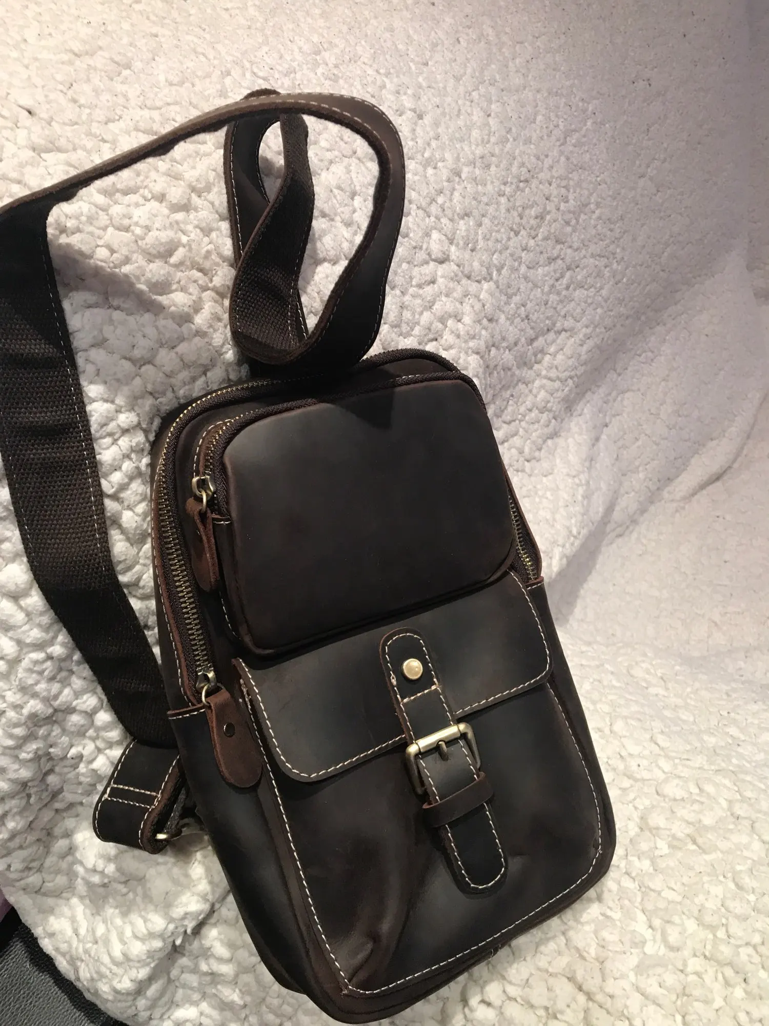 Нагрудная сумка мужская, из коровьей кожи, с защитой от кражи