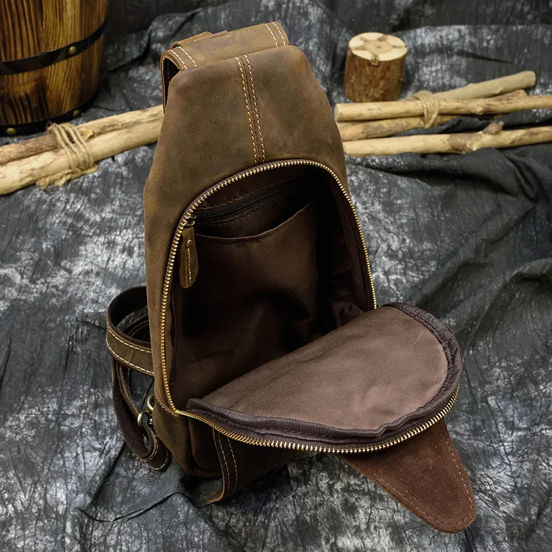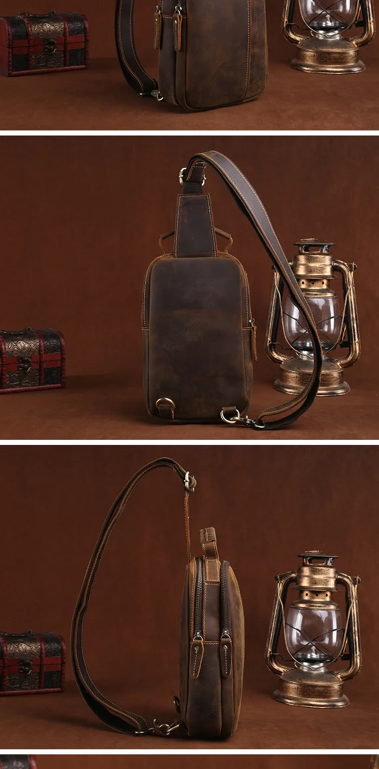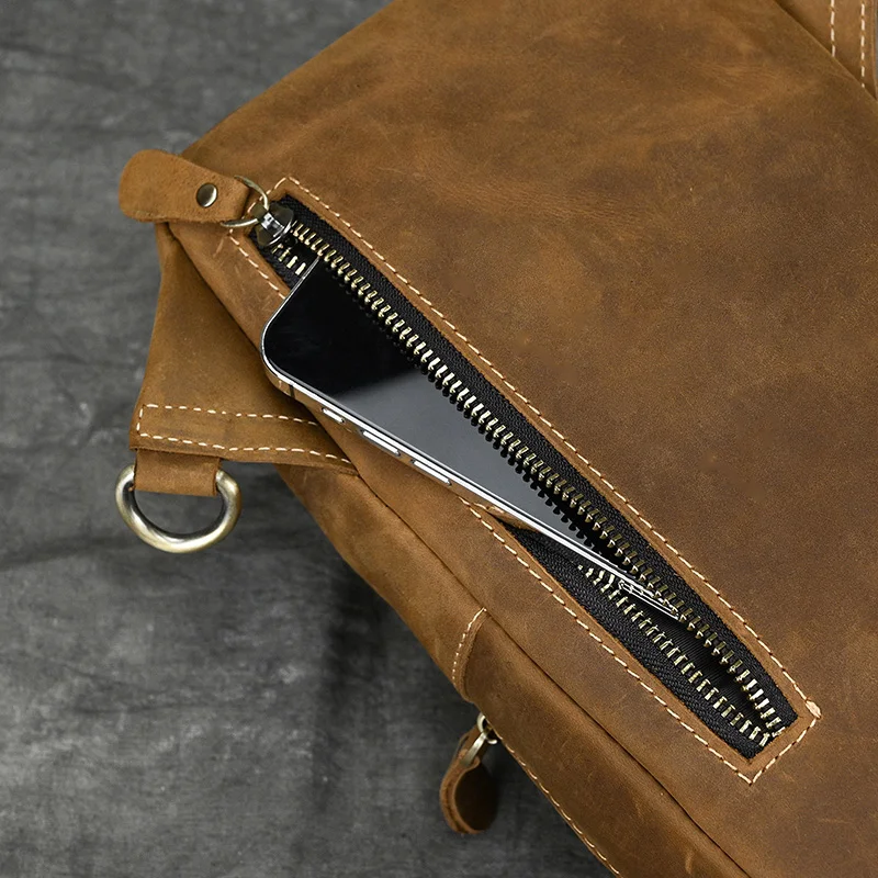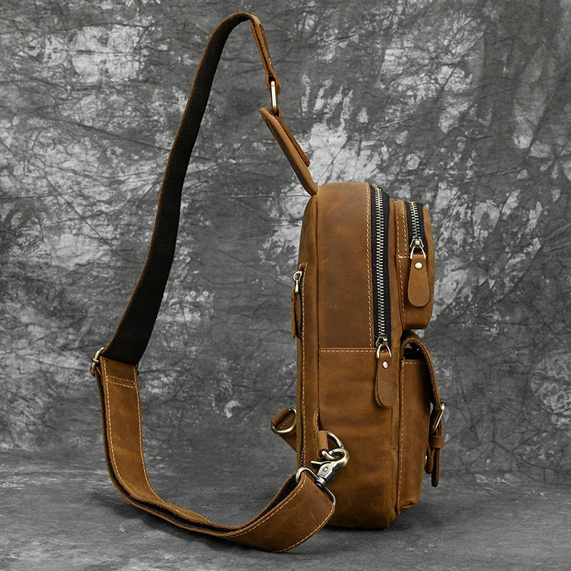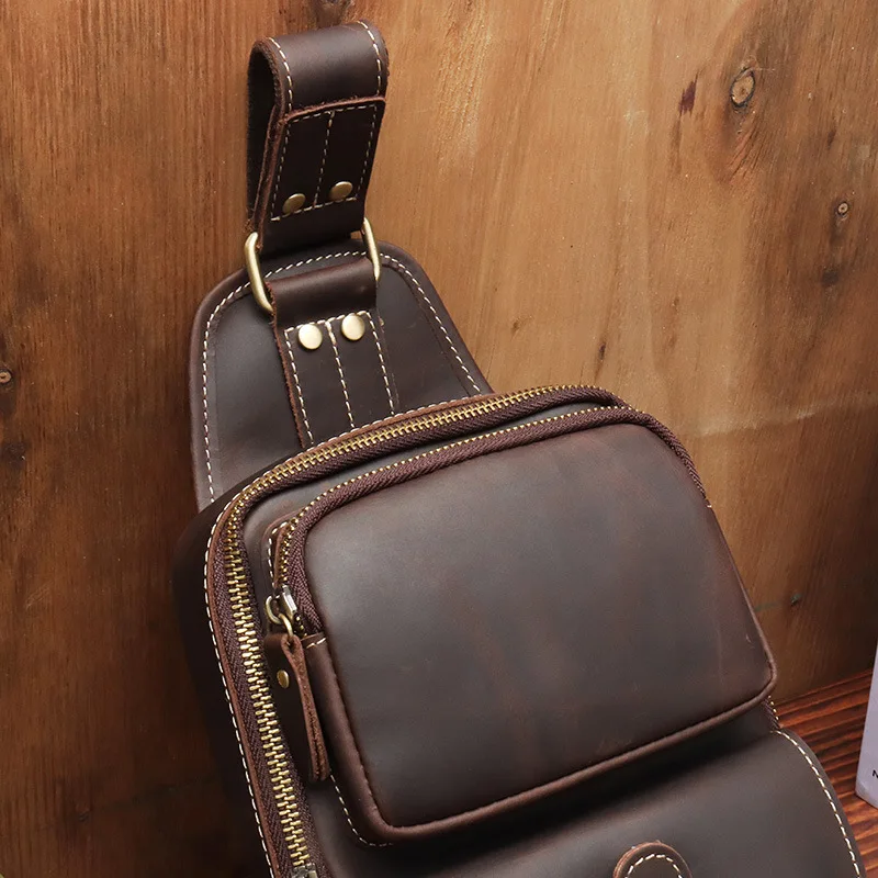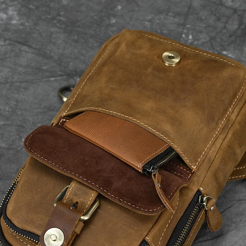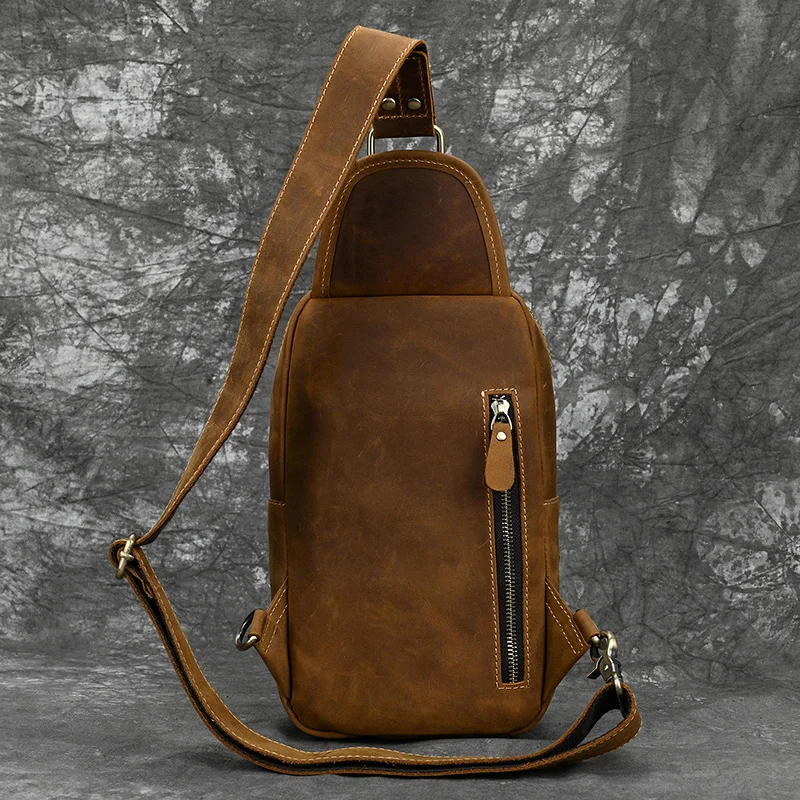 Нагрудная сумка мужская, из коровьей кожи, с защитой от кражи