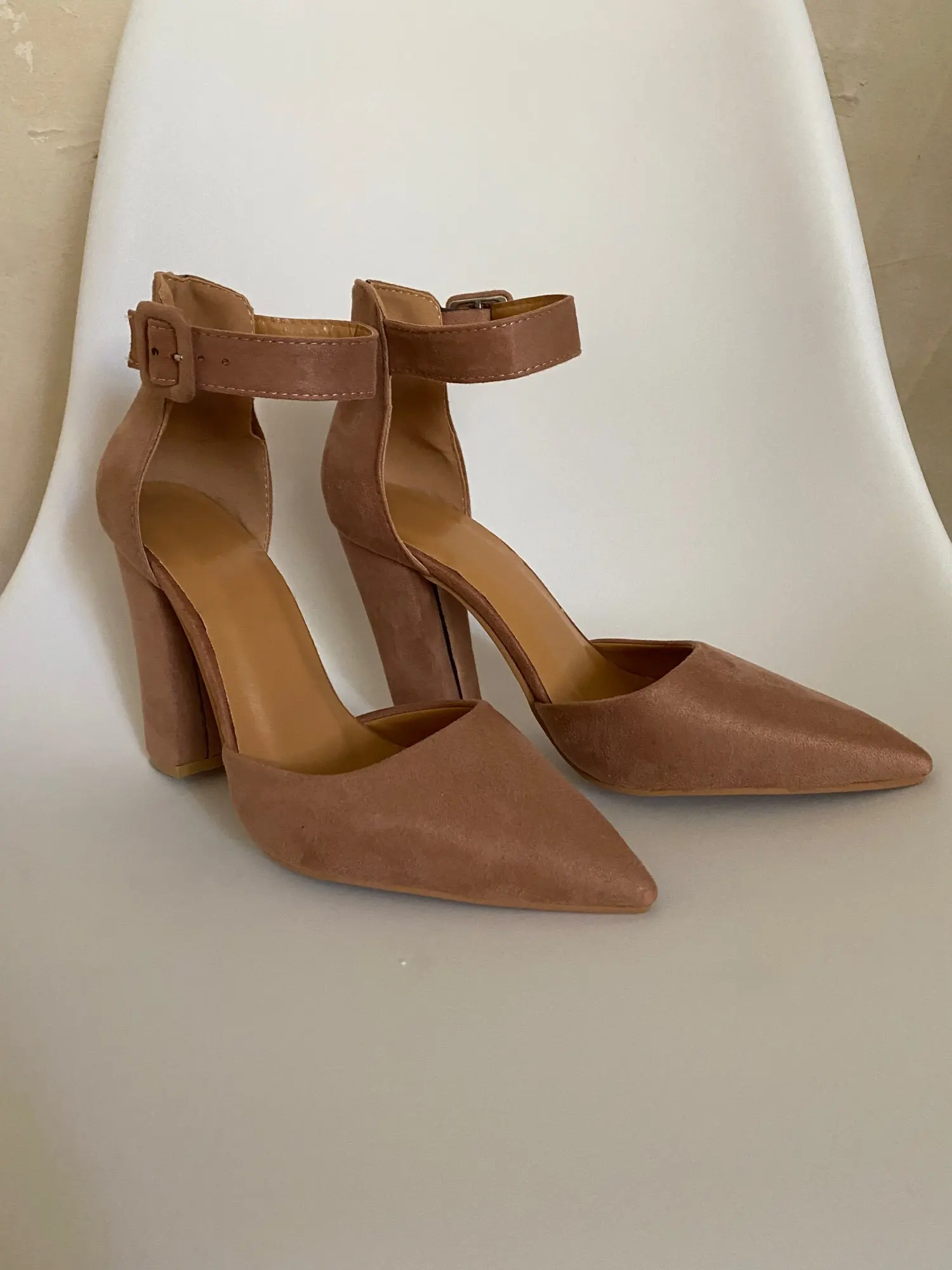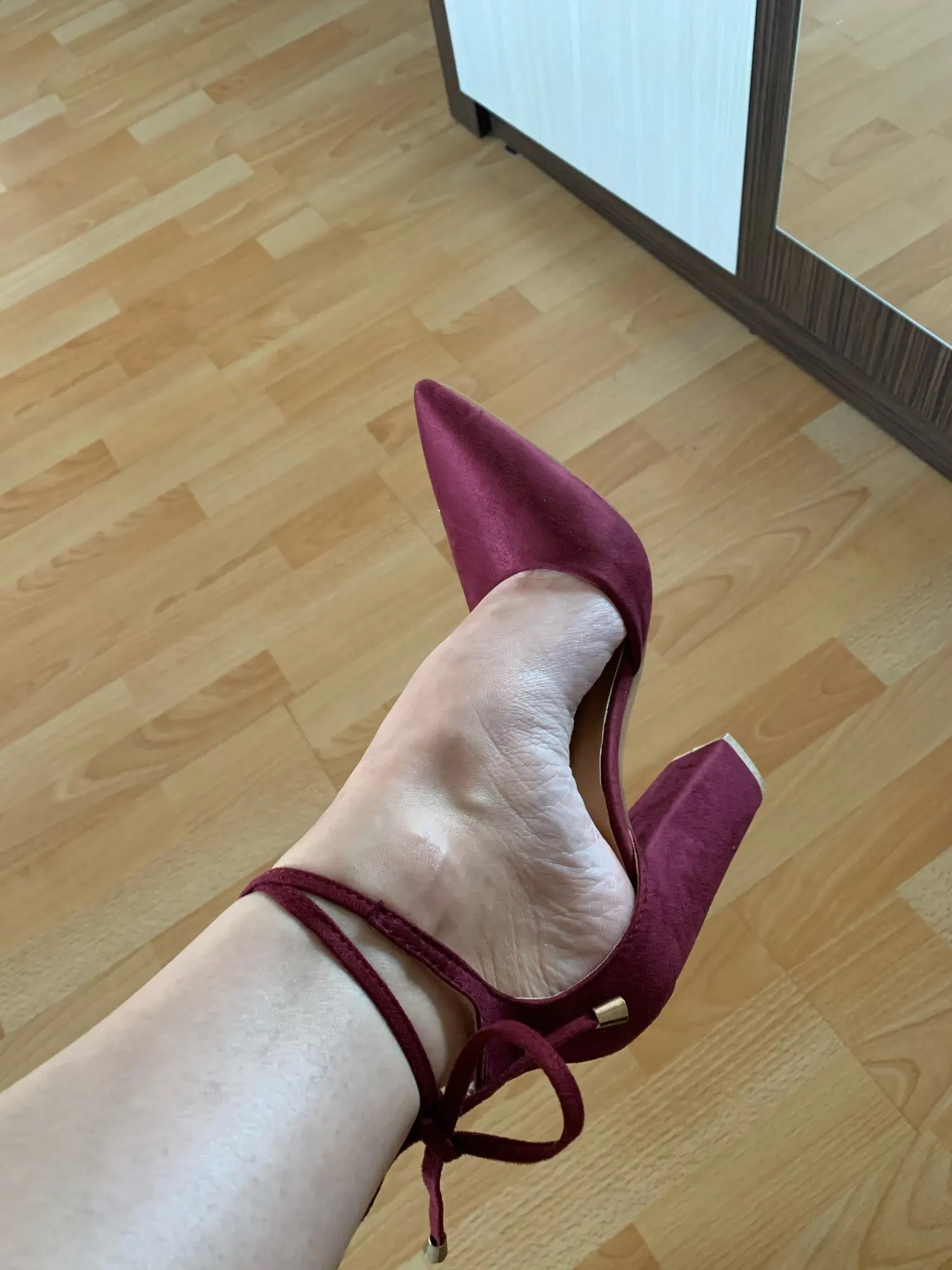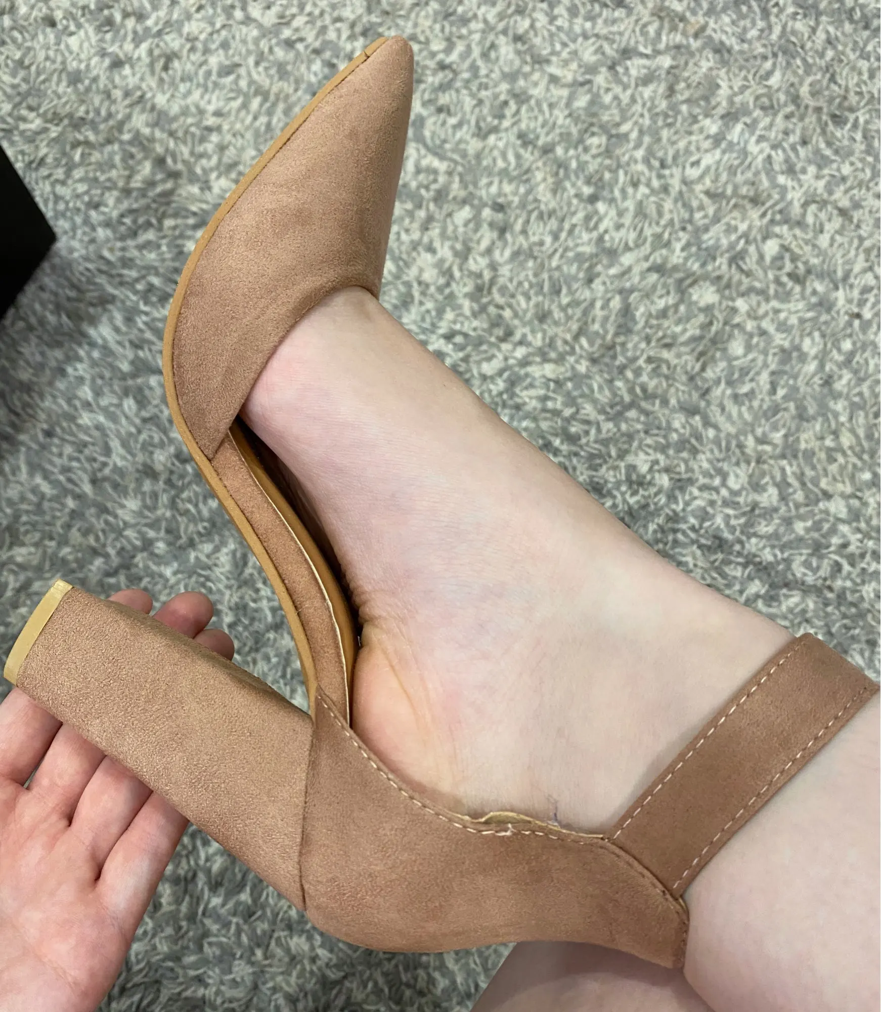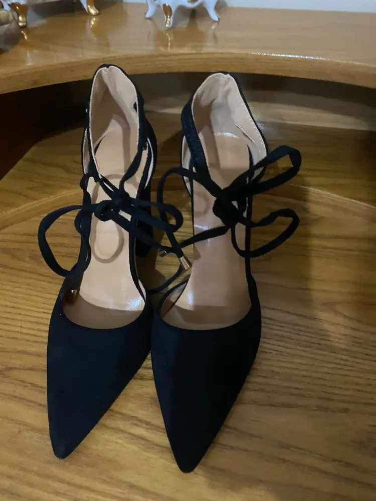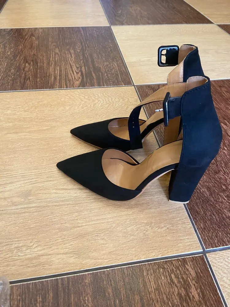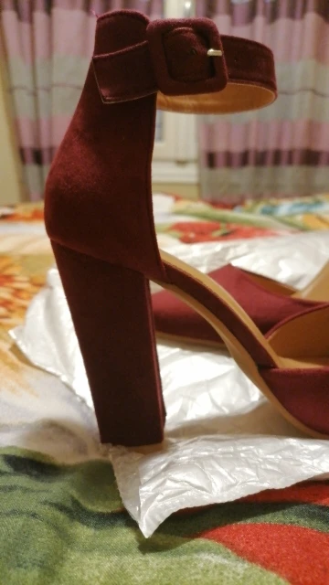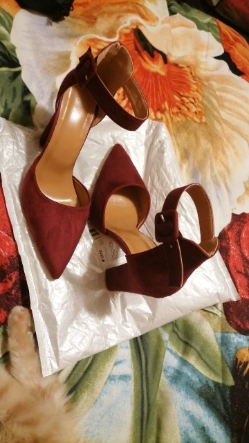К сожалению мне не повезло и туфли пришли с браком: плохо проклеенным швом на обоих каблуках и пропущенной строчкой на пятке. Открыла по этому поводу спор, продавец начал писать извинения и обещать выслать клей (что выглядит мягко говоря смешно) просить чтобы я закрыла спор, после вмешательства алиэкспресс спор был принят в мою пользу. В целом туфли за свою стоимость неплохие, но качество исполнения конечно среднее, очень дешевая стелька, ремешок какой то картонный не эластичный. Цвет очень крутой, материал приятный под замшу, нос у туфель в меру длинный, нога очень аккуратно смотрится. По размеру взяла свой размер на стопу 24 см 38 размер подошёл отлично! Доставка до города Волгограда 18 дней. Упакованы туфли были плохо, присутствует небольшая вмятина на правом каблуке, но ее не сильно видно. Думаю что ни явно не для будней, вечерний вариант. Ставлю 3 звёзды за то что продавец не добросовестно повёл себя при открытии спора, так бы поставила 4.