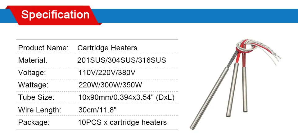 Нагревательный элемент LJXH, 10 шт.лот, Размер 10x90 мм, электрический нагревательный элемент из нержавеющей стали, картридж, трубчатый нагреватель 220 Вт300 Вт350 Вт