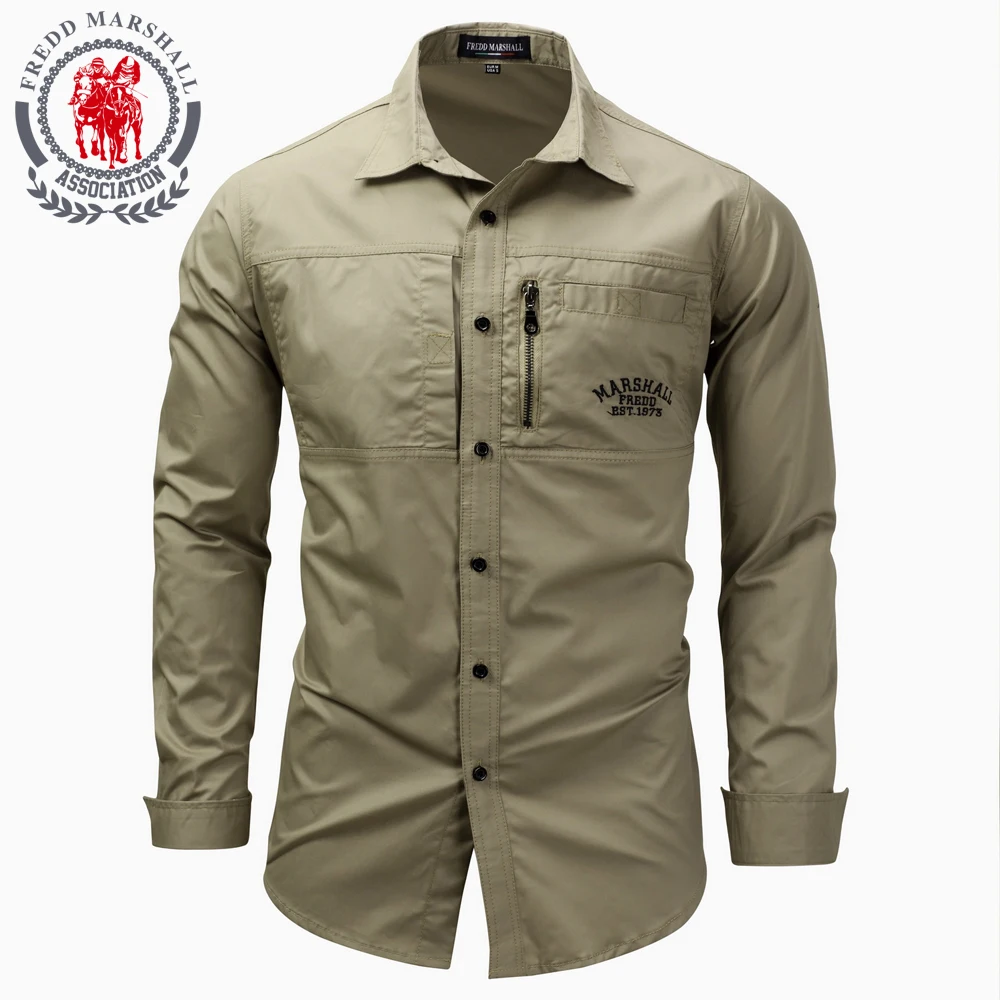 Fredd Marshall, новинка 2021, мужская рубашка с длинными рукавами и отворотом, на молнии, хлопковая рубашка для отдыха, брендовая мужская Повседневная рубашка, модель 117