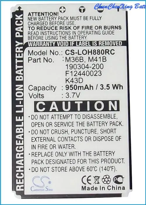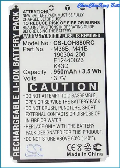 Аккумулятор Cameron Sino 950 мАч K43D, M36B, M41B, MSE10007, NTA2340 для Harmon Kardon TC30, для Monster AVL300, AVL300s, MCC-AV100