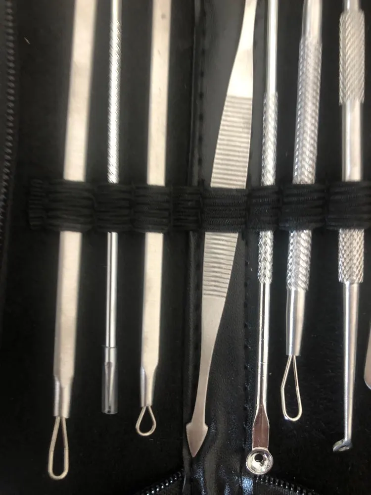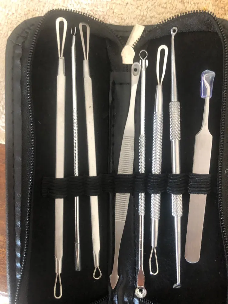 8 шт инструмент для удаления угрей комплект прыщи акне клип игла Уход за лицом комедонов инструмент для удаления угрей Съемник с кожаный чехол