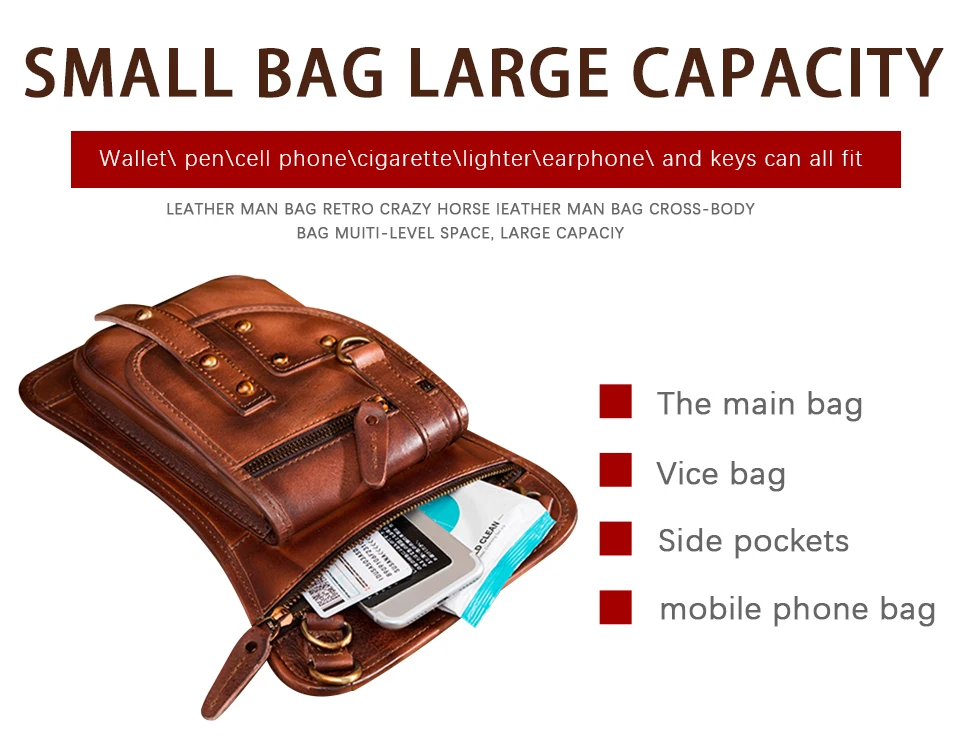 Сумка-мессенджер Мужская, из натуральной кожи, с крючком, чехол для телефона