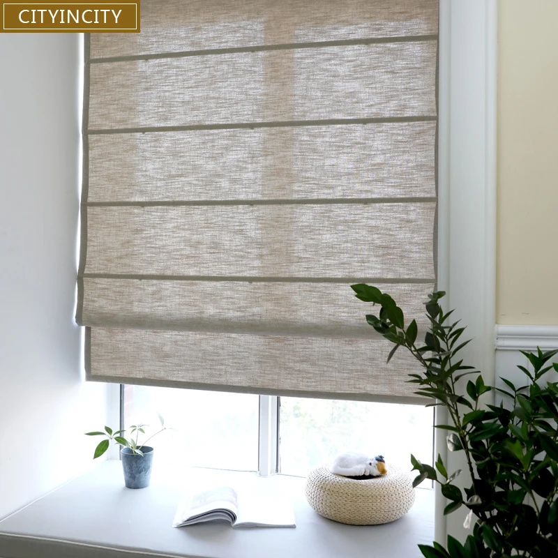 Однотонные римские шторы CITYINCITY из искусственного льна, занавески для гостиной, полузатемняющие римские жалюзи на роликах для кухонного окна, на заказ
