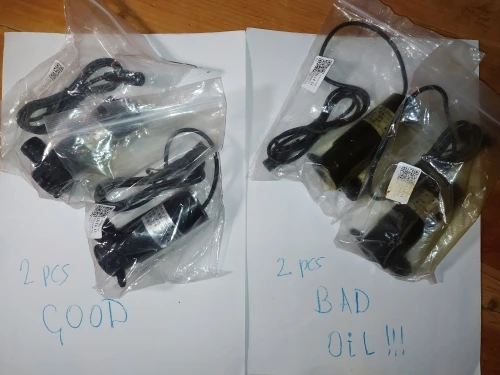 Брал 4 насоса. 2 пришли аккуратными чистенькими, а 2 были в масле. Либо все должны быть в масле, либо все должны быть чистенькими.Работают все, но как-то странно. в час качают на высоту 1 метр 250 литров ( а не 400). мощность 25 ватт, а не 36. отмечу, что ранее брал такой же и он с задачей своей справлялся 2 года