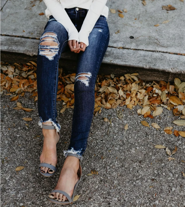 Женские рваные джинсы, винтажные облегающие хлопковые брюки-скинни с эффектом усов, весна 2021